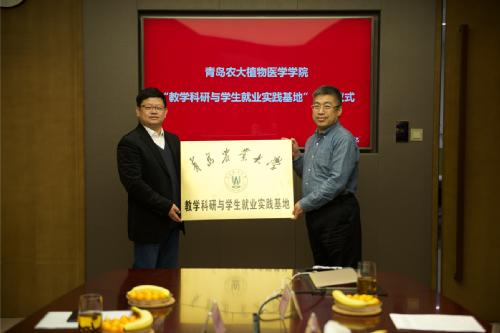 4月23日,2026世界杯官网在山东康乔生物科技有限公司设立教学科研与员工就业实践基地,2026世界杯官网经理刘同先教授向山东康乔公司董事长李宁先生授牌