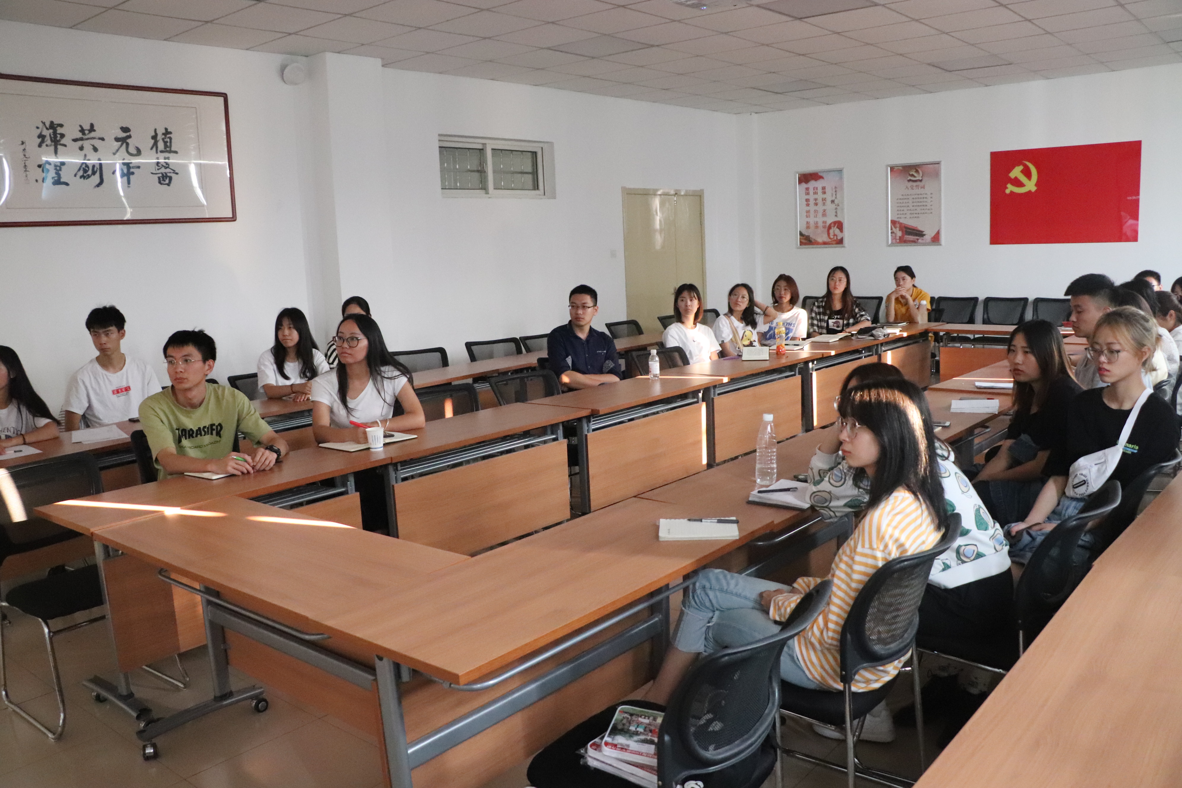 活动期间,参会人员一起观看了电影《建国大业》,电影向我们展示了抗日战争胜利后,国民党统治者打破重庆谈判签订的《双十协定》,公然向共产党统治区开战,掀起国共内战,在前辈先烈前赴后继,不畏牺牲的顽强斗争下,在四万万农民阶级、工人阶级的支持下最终取得解放战争胜利并顺利举行开国大典的一段历史。影片播放期间,观影同学全神贯注,被影片的情节发展所打动。