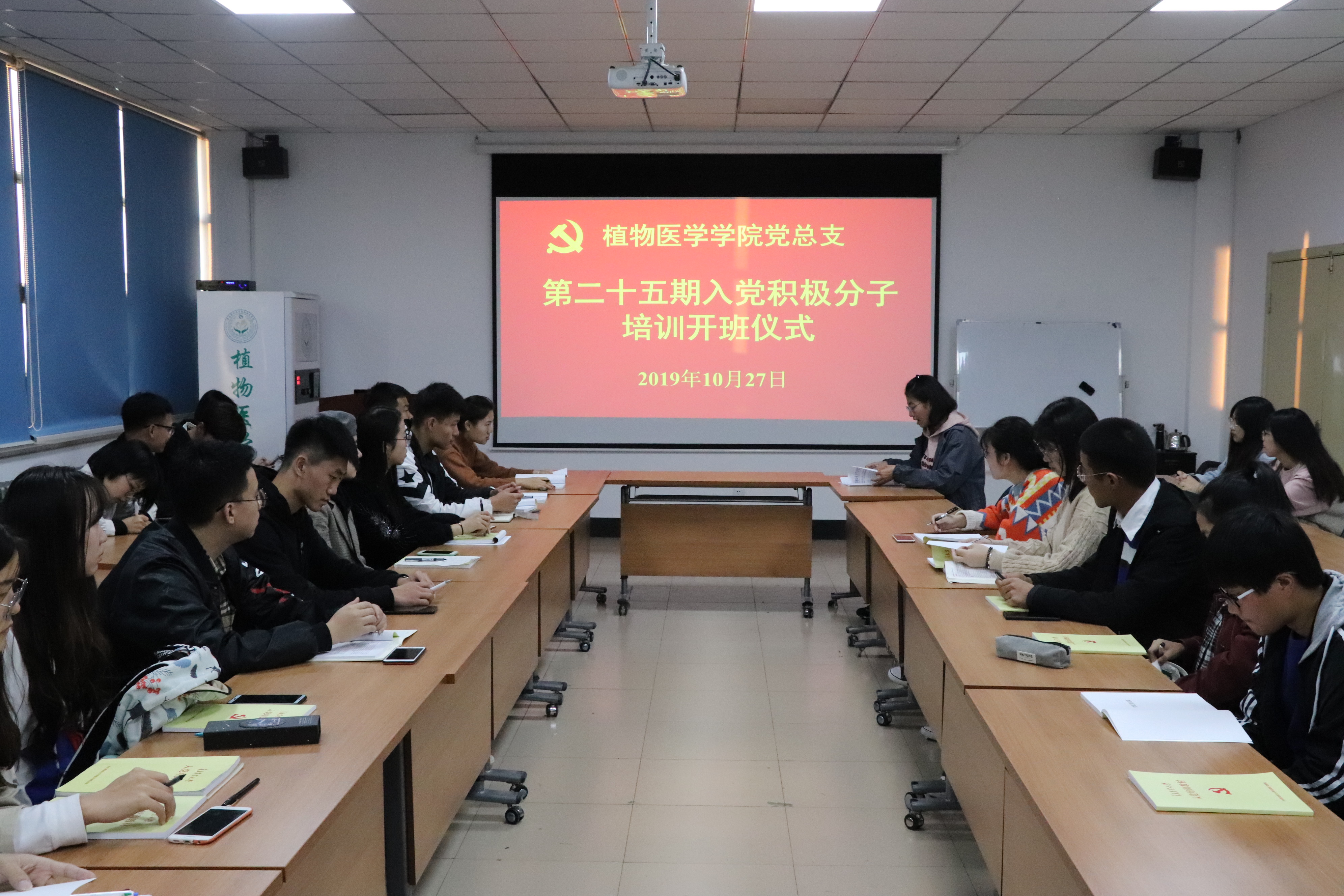 为进一步做好发展党员工作,保证新发展党员质量,培养造就高素质党员素质,2019年10月27日,2026世界杯官网在生物楼会议室举行了第二十五期入党积极分子培训班仪式,会议由辅导员王丽静主持。