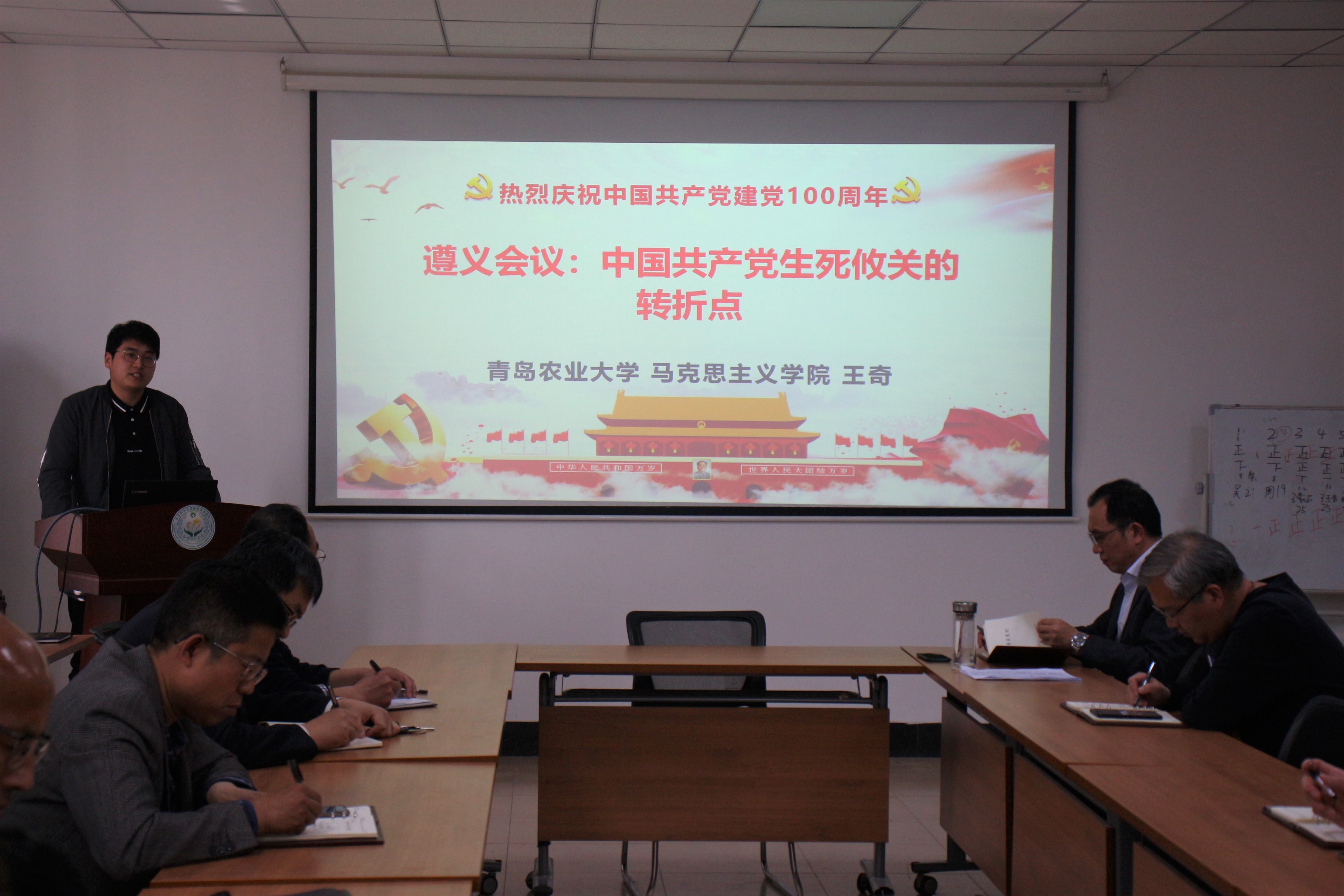 报告从“左”倾主义的泛滥、遵义会议及其系列会议、遵义系列会议的意义三个方面对遵义会议及其系列会议进行论述。他首先指出广义上的遵义会议包括一系列会议,而遵义会议及其系列会议的召开本身就是历史转折到一定程度的结果;其次论述了遵义会议及其系列会议是在党内“左”倾错误泛滥,导致中国革命出现曲折,红军第五次反“围剿”的失败,进而在实行战略转移(长征)的情况之下召开的;再次论述了遵义会议及其系列会议的召开及会议内容;最后明确了遵义会议的伟大历史意义以及习近平总书记关于遵义会议精神和遵义会议特点的现实意义。王奇提到,遵义会议是中国共产党历史上生死攸关的转折点,其召开说明中国革命道路及后来发展道路并不是一帆风顺的,马克思主义发展是螺旋式上升的,不是直线式上升,其现实意义即遵义会议精神——坚定信念、实事求是、独立自主、敢闯新路、民主团结,对当代中国共产党人建设社会主义社会有着重要指导作用。其中很多解决问题的方式方法仍沿用至今,如坚持民主集中制,少数服从多数,没有调查就没有发言权,实践是检验真理的唯一标准,学会独立思考,探索符合本国国情的道路等。通过学习,全体教职工进一步深化了对党史的学习,了解了党史的主要脉络,更加深刻把握历史上的重大事件、重要会议、重要人物,对党的思想理论、精神谱系、历史经验有了更深入的理解。