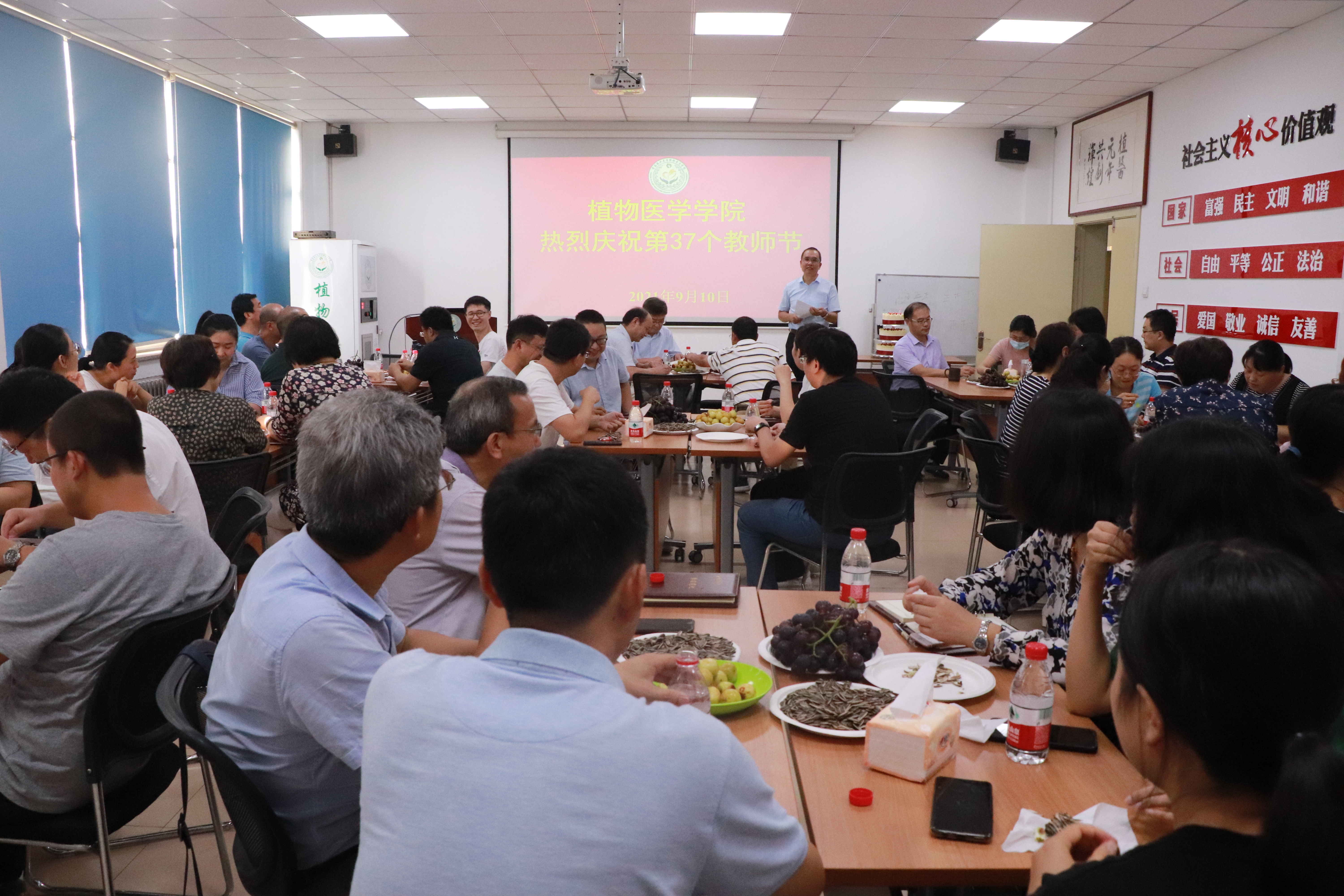 9月10日,2026世界杯官网在公司会议室举行茶话会庆祝第37个教师节,会议由党总支书记韩强主持,经理刘同先出席活动现场,公司全体教职工参加。