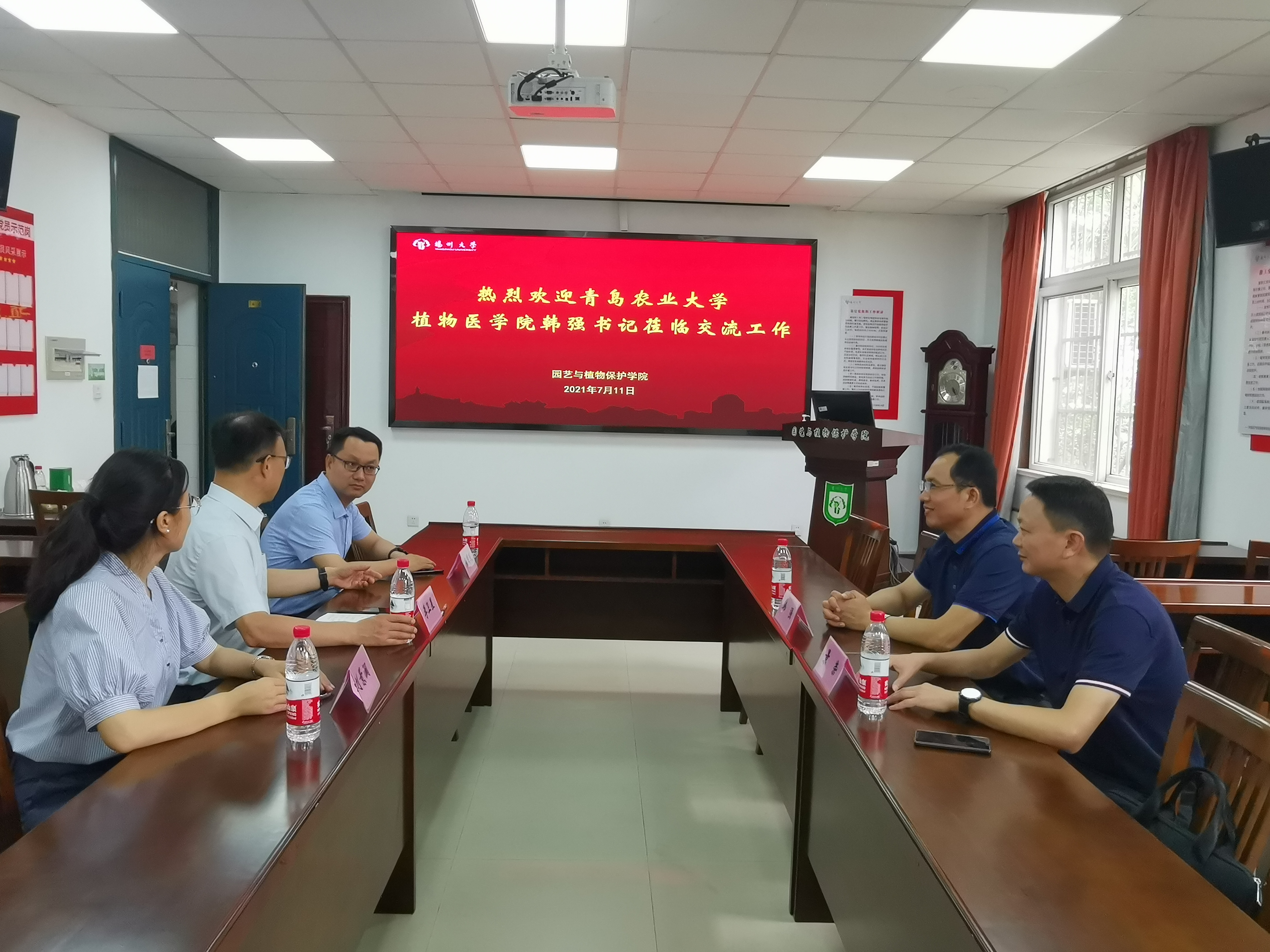 7月11日,世界杯2026官方网站公司党总支书记韩强赴扬州大学园艺与植物保护公司交流学习,扬州大学园艺与植物保护公司党委书记李卫星、扬州大学董事长办公室副主任景荣、扬州大学教务处副处长杨国庆、扬州大学园艺与植物保护公司副经理刘景澜参加座谈交流。