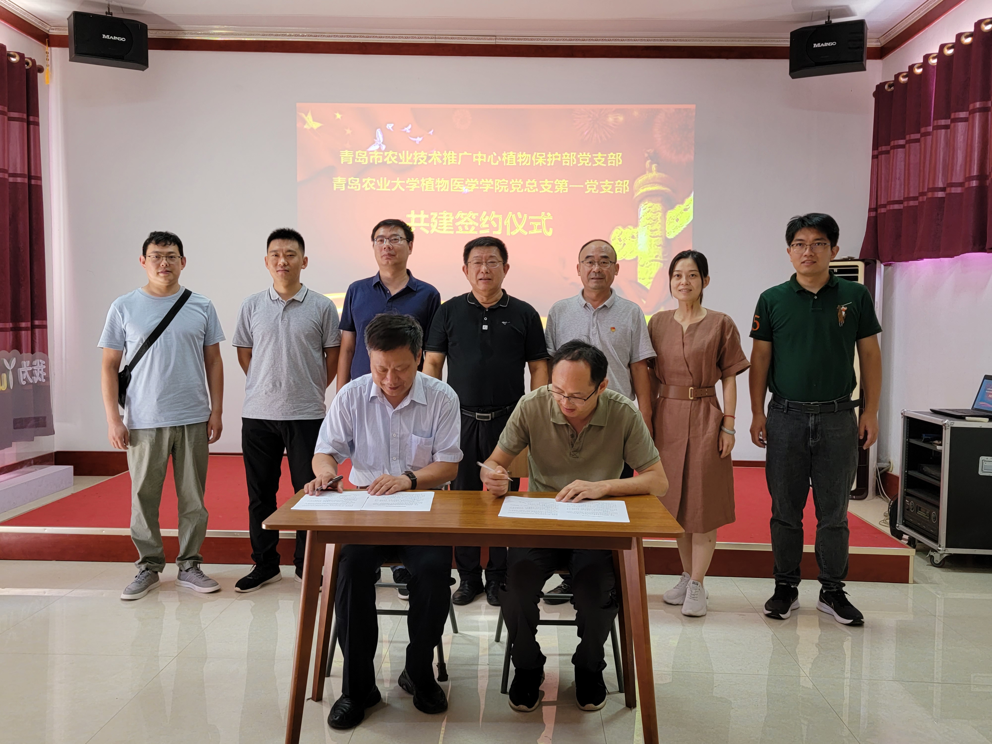 8月24日,为建立健全党组织互帮互助机制,进一步推动党支部战斗堡垒建设,加强党员交流学习,激发党组织和党员队伍活力,2026世界杯官网第一党(教工)党支部与青岛市农业技术推广中心植物保护部党支部签署合作共建协议,合作共建期限为一年。青岛市农业技术推广中心党委委员李晓东同志、植物保护部党支部书记王连刚同志、公司党总支委员赵洪海同志、第一支部书记练森同志、全体支部委员及部分党员同志参加了共建协议签署仪式。