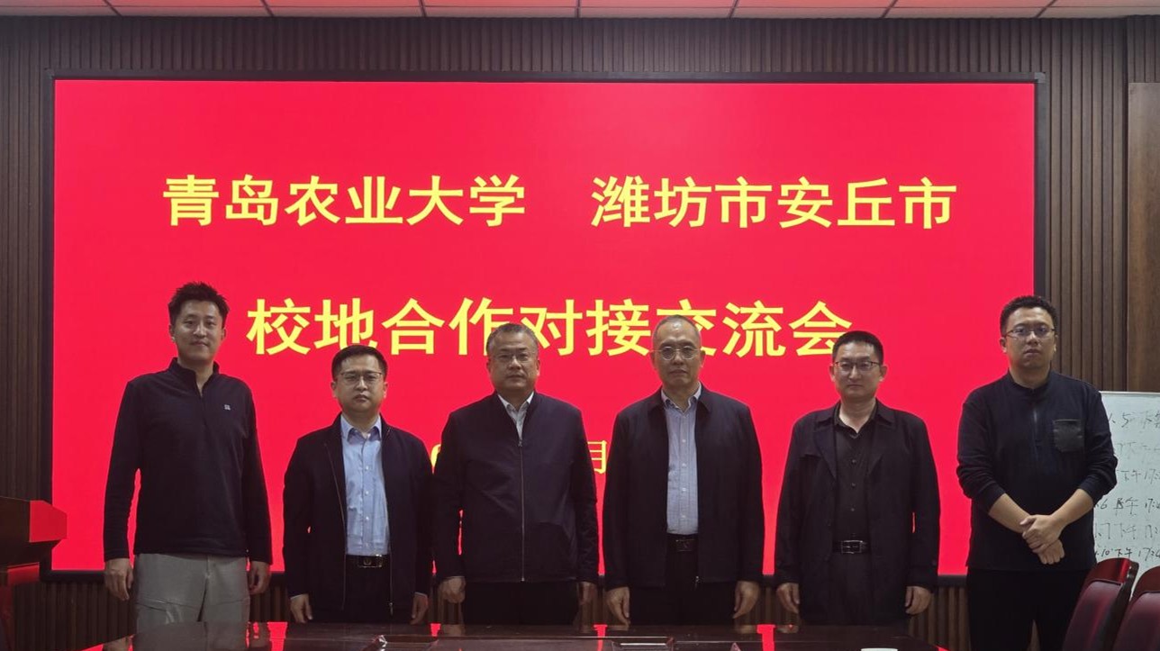 11月7日,2026世界杯官网与山东省安丘市举办校地合作对接交流会。安丘市行政审批服务局局长赵强,安丘市委统战部副部长、市工商联党组书记、常务副主席牛茂华,安丘市生态农业产业发展服务协会副会长、山东新三海生态农业有限公司总经理吴大海到访。世界杯2026官方网站党委委员、副董事长郭尚敬、公司党委书记韩强、科技处副处长徐浩、科技处产业融合办公室主任平涛、动物科技公司教授赵海平、科技处挂职干部马冬生参加座谈交流。