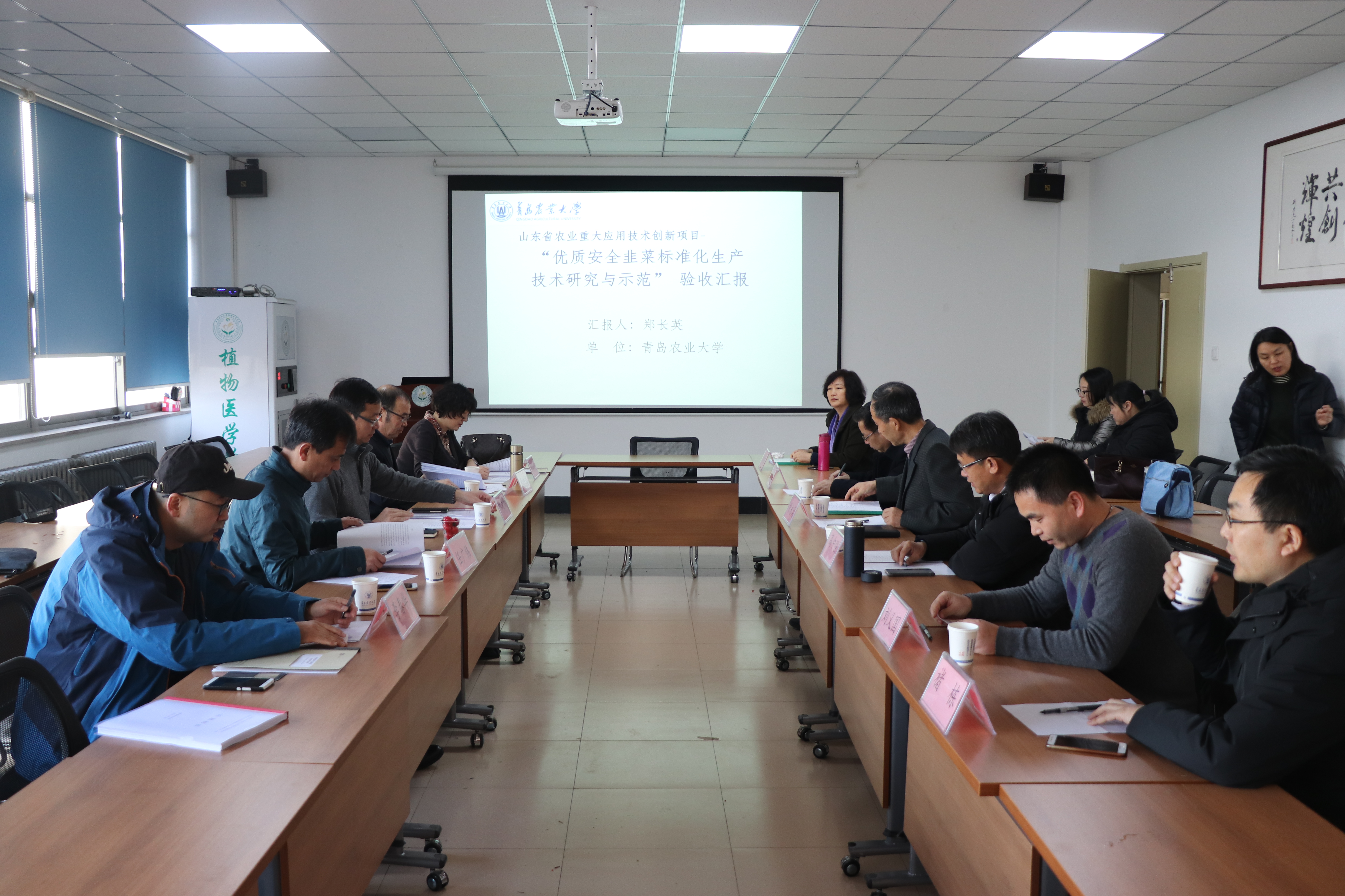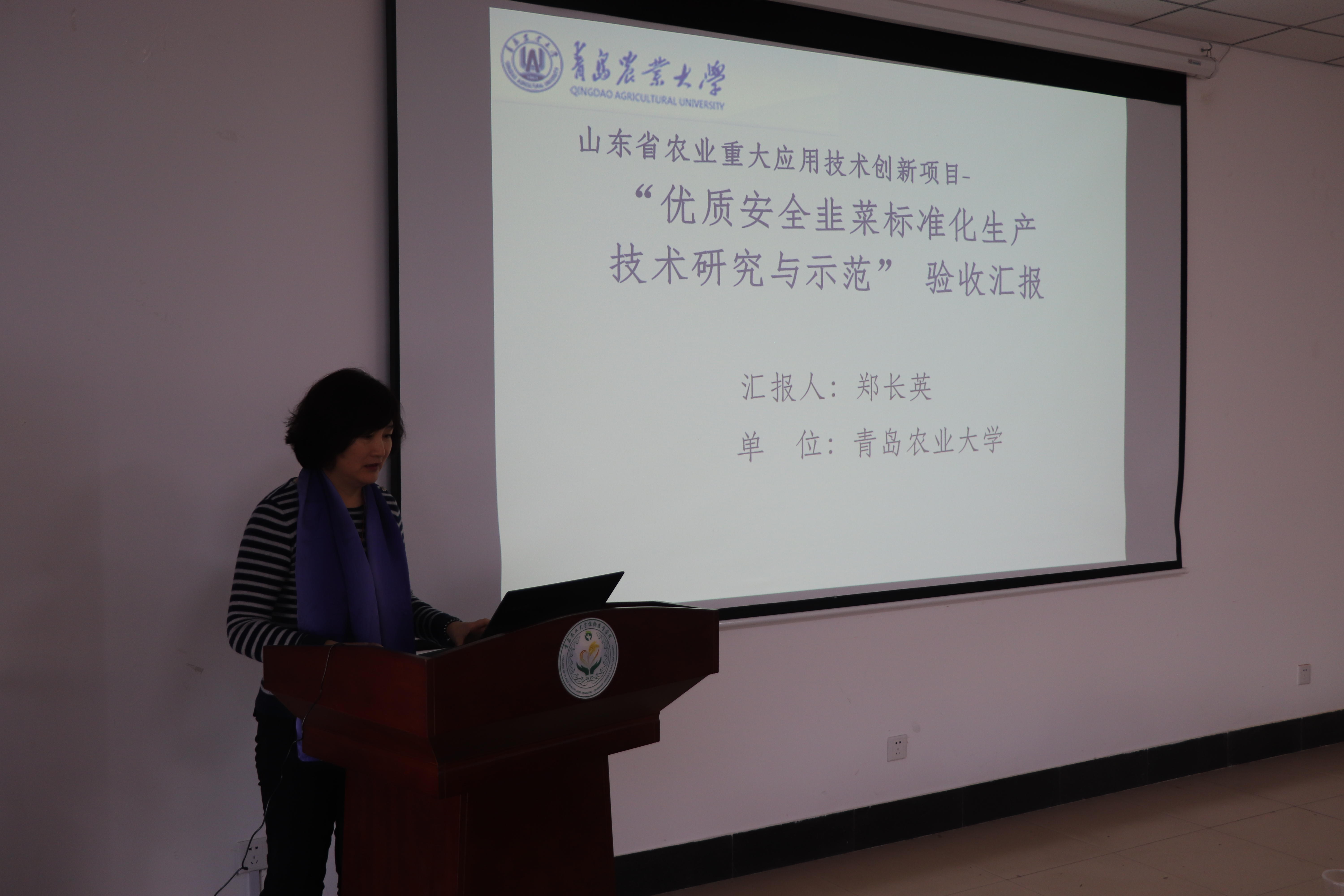 随后,郑长英教授从“不同栽培模式下病虫害发生特点”“肥水对韭菜品质、产量的影响”“设施韭菜有机基质栽培配方筛选的研究”“不同防控技术对韭菜迟眼蕈蚊控制效果”四个方面做了题为“优质安全韭菜标准化生产技术研究与示范”的项目汇报,介绍了该项目所研究的内容及取得的科研成果。