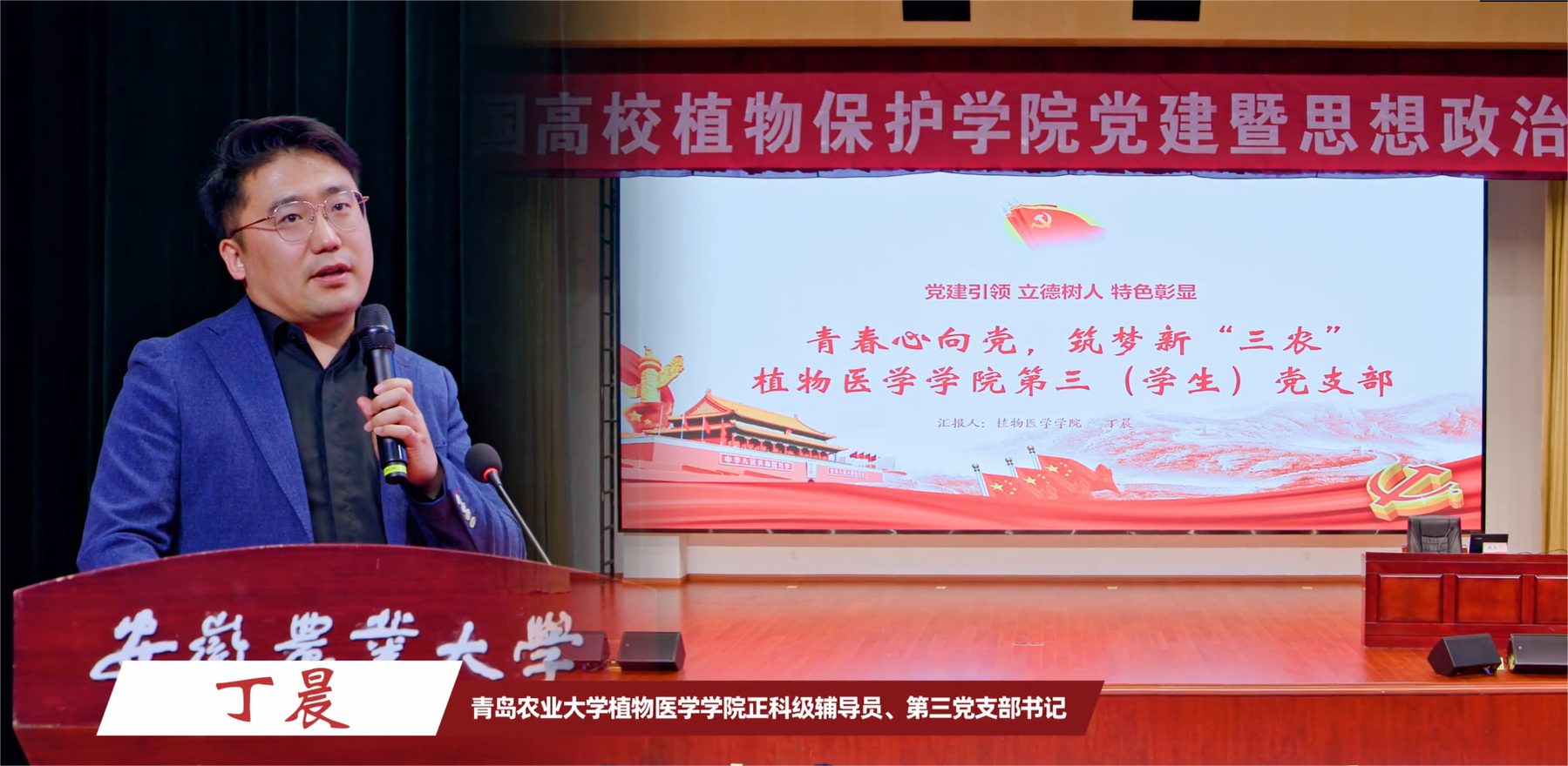 中国农业大学植物保护公司党委常务副书记刘姝言作了题为“学习贯彻习近平总书记给中国农业大学科技小院的员工重要回信精神”的主题报告。党的二十大代表、全国优秀共产党员、全国先进工作者、全国最美思政课教师、安徽师范大学马克思主义公司教授路丙辉作了题为“创造温暖环境 培育时代新人”的特邀报告。