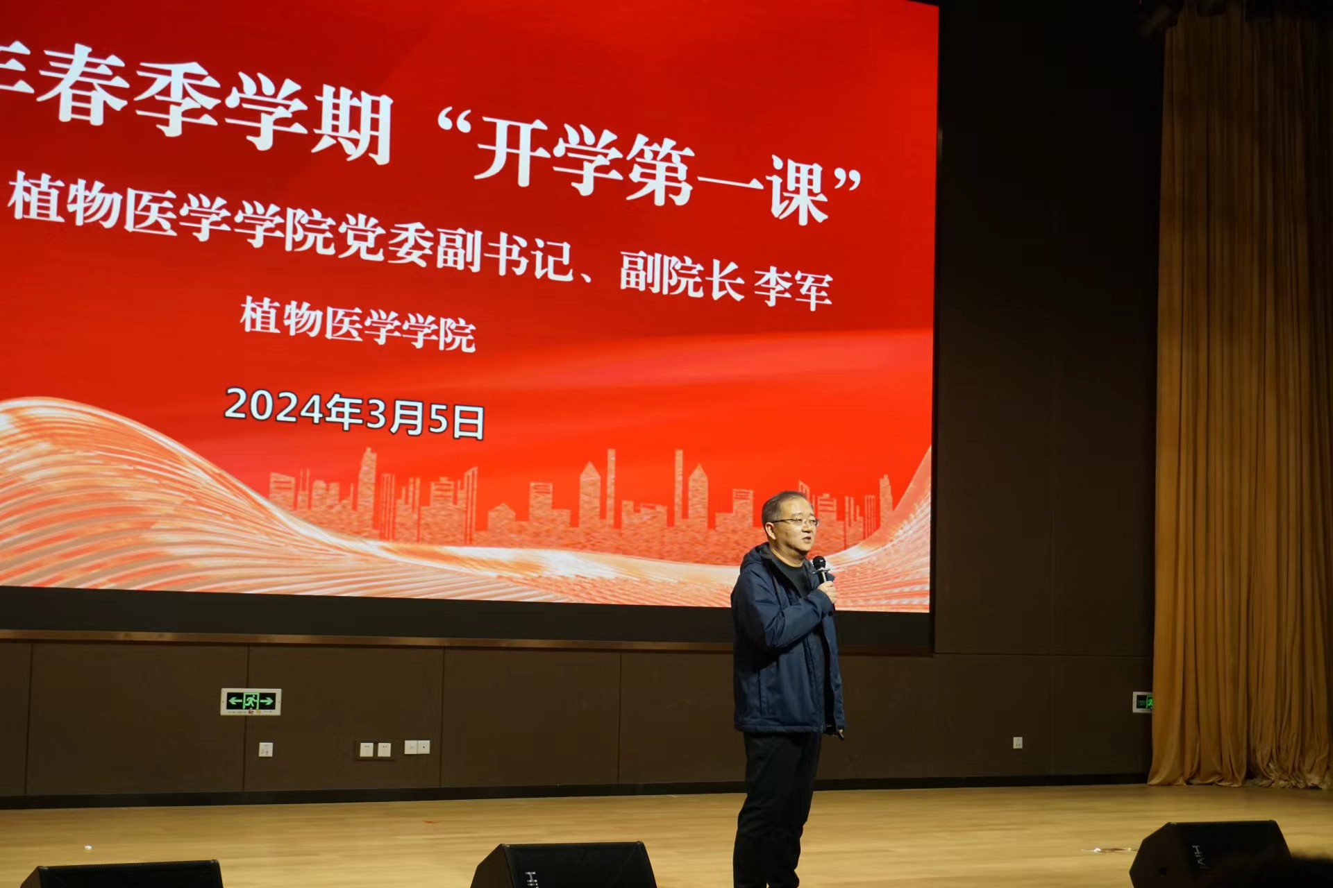 3月5日,世界杯2026官方网站植物医公司党委副书记、副经理李军在平度校区老员工活动中心为2023级全体员工上春季“开学第一课”。