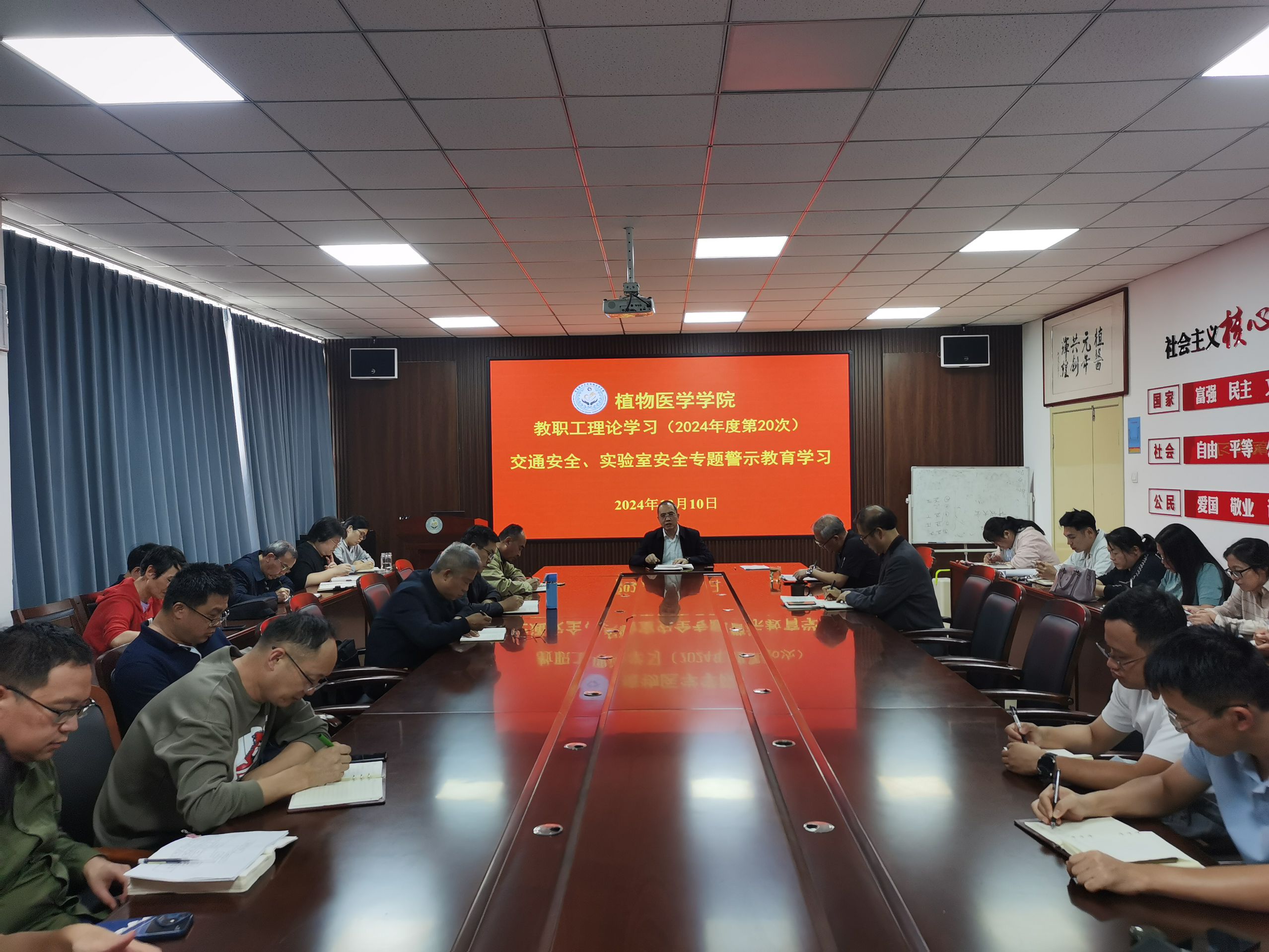 10月10日,2026世界杯官网在公司会议室开展2024年度第20次教职工理论学习,深入学习交通安全与实验室安全警示教育内容。会议由公司党委书记韩强主持,全体教职工参加。