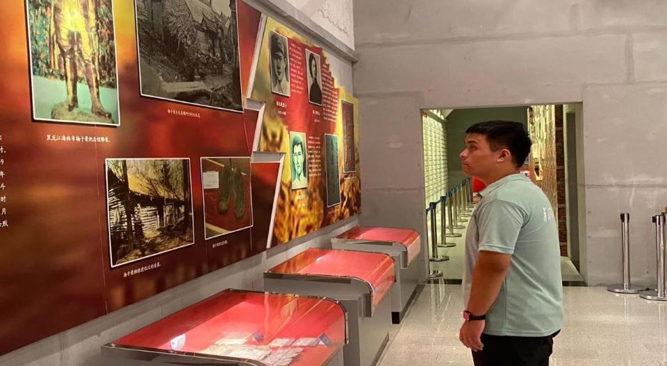 7月20日,团队前往英灵山烈士墓园,了解革命先烈的事迹。在纪念馆内,通过丰富的历史图片、珍贵的文物资料和生动的影像资料,团队成员们更加直观地感受到了革命战争的残酷与革命先烈的伟大。全体成员自发排成整齐的队列,面向巍峨矗立的“人民英雄永垂不朽”纪念牌匾肃立、默哀,表达对革命先烈的深切怀念和崇高敬意。随后实践团成员踏入烈士陵园,满腔敬意。雨幕中,他们肃立在烈士墓前,向革命先烈怀念。员工们誓言将红色精神薪火相传,以实际行动告慰先烈英灵。
