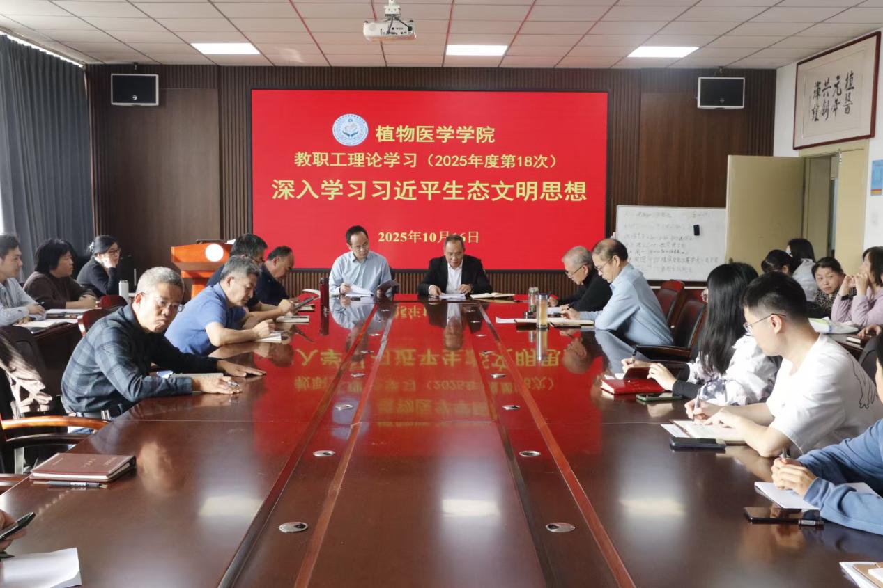 会上,韩强指出,要准确把握习近平生态文明思想的科学要义,扎实推进绿色校园建设,立足公司学科优势,将课程优化、科研创新与社会服务深度绑定,全力打造特色育人体系。全体教职工要以实干笃行的作风,精益求精的追求和担当作为的精神助力美丽中国建设。在落实相关要求的基础上,聚焦自身教学科研与生态建设的结合点,力争在生态文明建设领域打造植医样板,贡献植医力量。