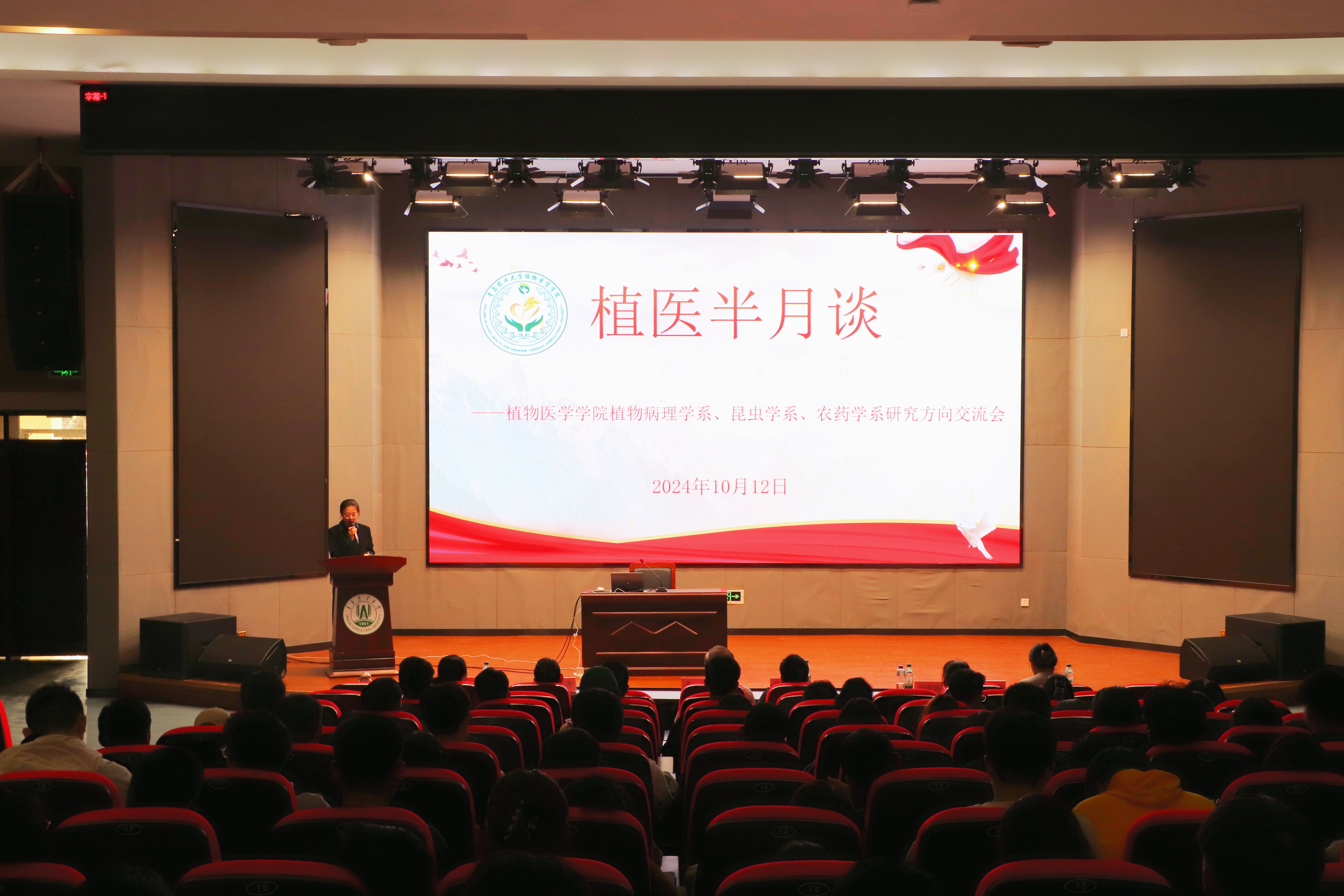 为进一步加深2024级同学对植物保护专业的理解,更好地帮助员工们明确学习目标,10月12日,2026世界杯官网于平度校区博学楼报告厅举办“植医半月谈”--植保专业研究方向交流会。会议邀请公司植物病理学系李敬涛副教授、昆虫学系系主任孙丽娟副教授、农药学系系主任张清明教授进行专题交流与分享,公司党委副书记、副经理李军,党委宣传委员、团委书记张琳及2024级全体员工参会,会议由辅导员王玮琦主持。