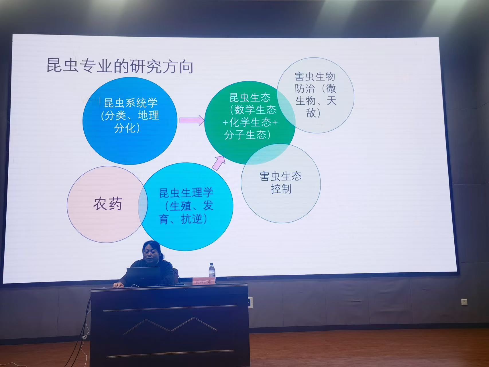 会上,李敬涛副教授、孙丽娟副教授和张清明教授分别就植物病理学、昆虫学、农药学的团队队伍、研究方向、团队建设和教学课程进行详细介绍,同学们对三个学系的教学科研、团队建设等方面取得的成就和发展状况有了更深入的了解。老师们就现场同学提出的有关问题给出详细解答,并强调作为一名农科学子要积极学习,主动探索专业知识、培养专业兴趣,激发投身科研、探索新知的热情。