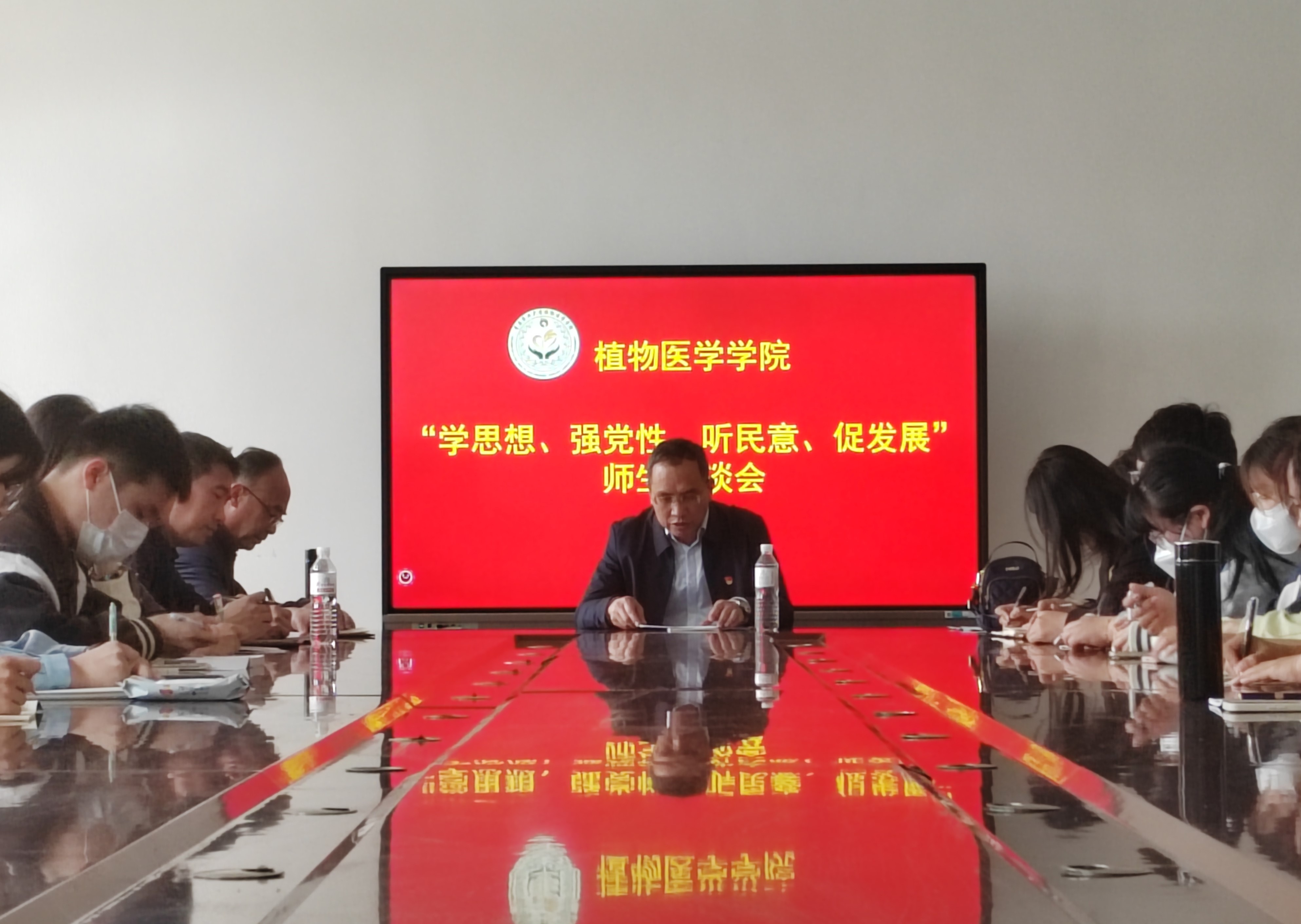 随后,公司党委理论学习中心组成员与2022级员工代表在平度校区老员工活动中心召开师生座谈会,公司党委书记韩强领学《习近平给中国农业大学科技小院同学们的回信》,强调全体同学要牢固树立爱农情怀,提升兴农本领,为服务国家现代化战略贡献力量;要明确目标,找准定位,为国家三农和乡村振兴事业献计献策。2022级员工代表围绕专业学习、校园活动、社会实践、生活保障等方面畅谈意见建议,与会老师认真倾听并记录,对同学们提出的问题一一进行了解答。