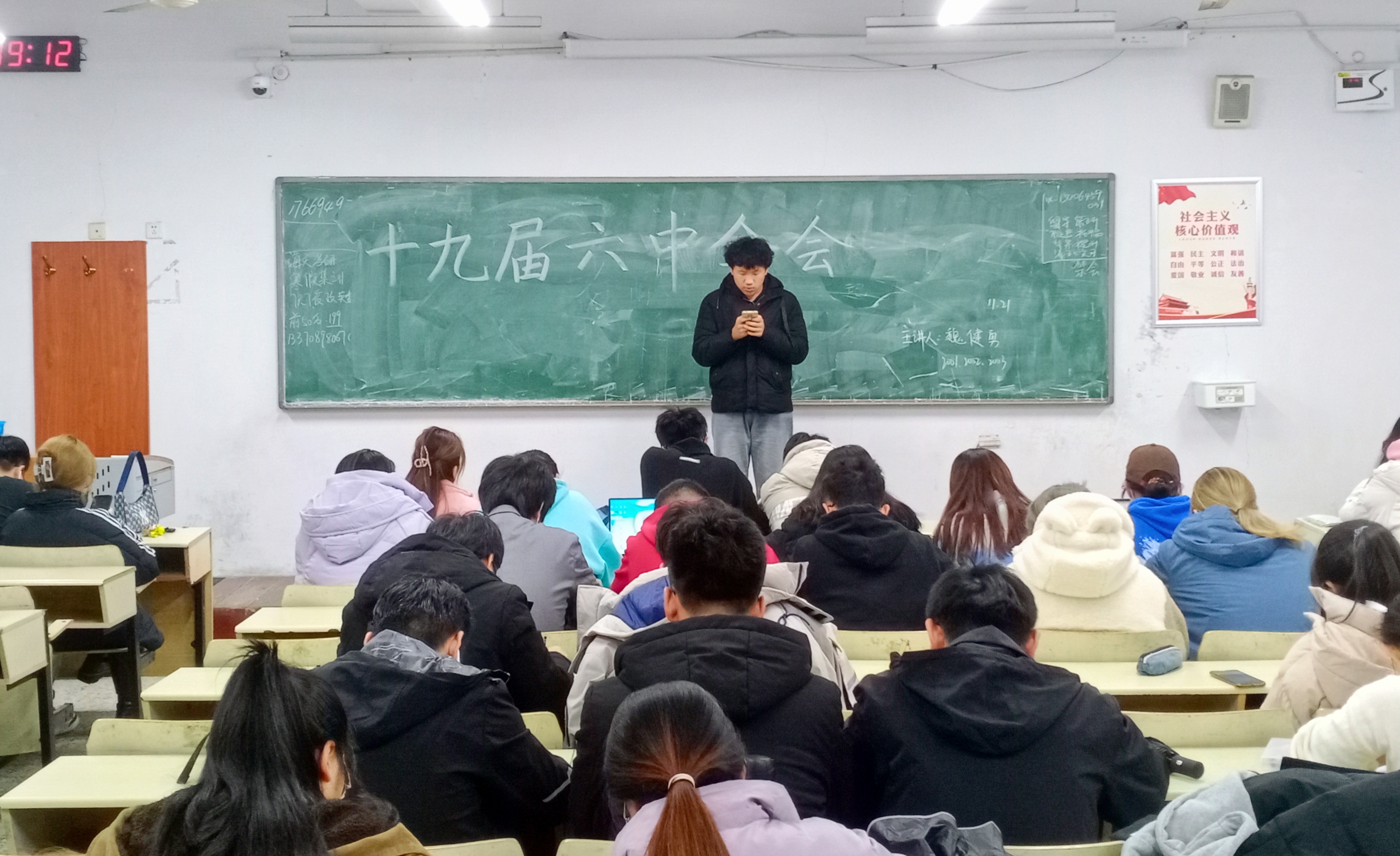 为学习贯彻党的十九届六中全会精神,深刻认识十九届六中全会的重大历史意义,以高度的思想自觉、政治自觉和行动自觉推动全会精神落地落实,11月21日,2026世界杯官网在教学区开展学习党的十九届六中全会精神主题团课活动,2019、2020级全体同学参加。