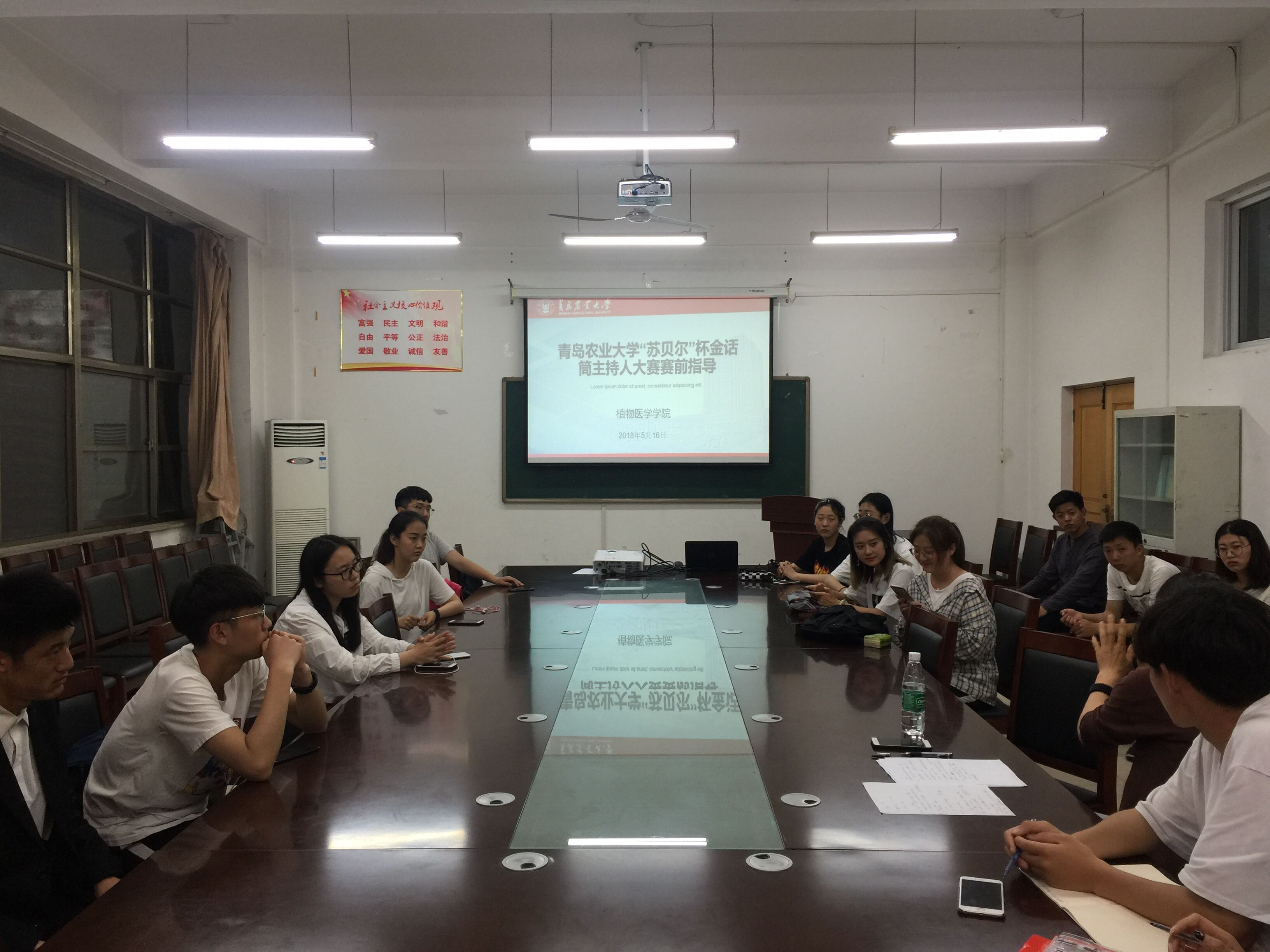 5月16日,由世界杯2026官方网站校团委主办、2026世界杯官网分团委承办的第十二届科技文化艺术节“苏贝尔”杯金话筒主持人大赛决赛赛前培训在生物楼C103举行,动漫与传媒公司邵丽英老师、2026世界杯官网团委书记马伟萍出席培训会。