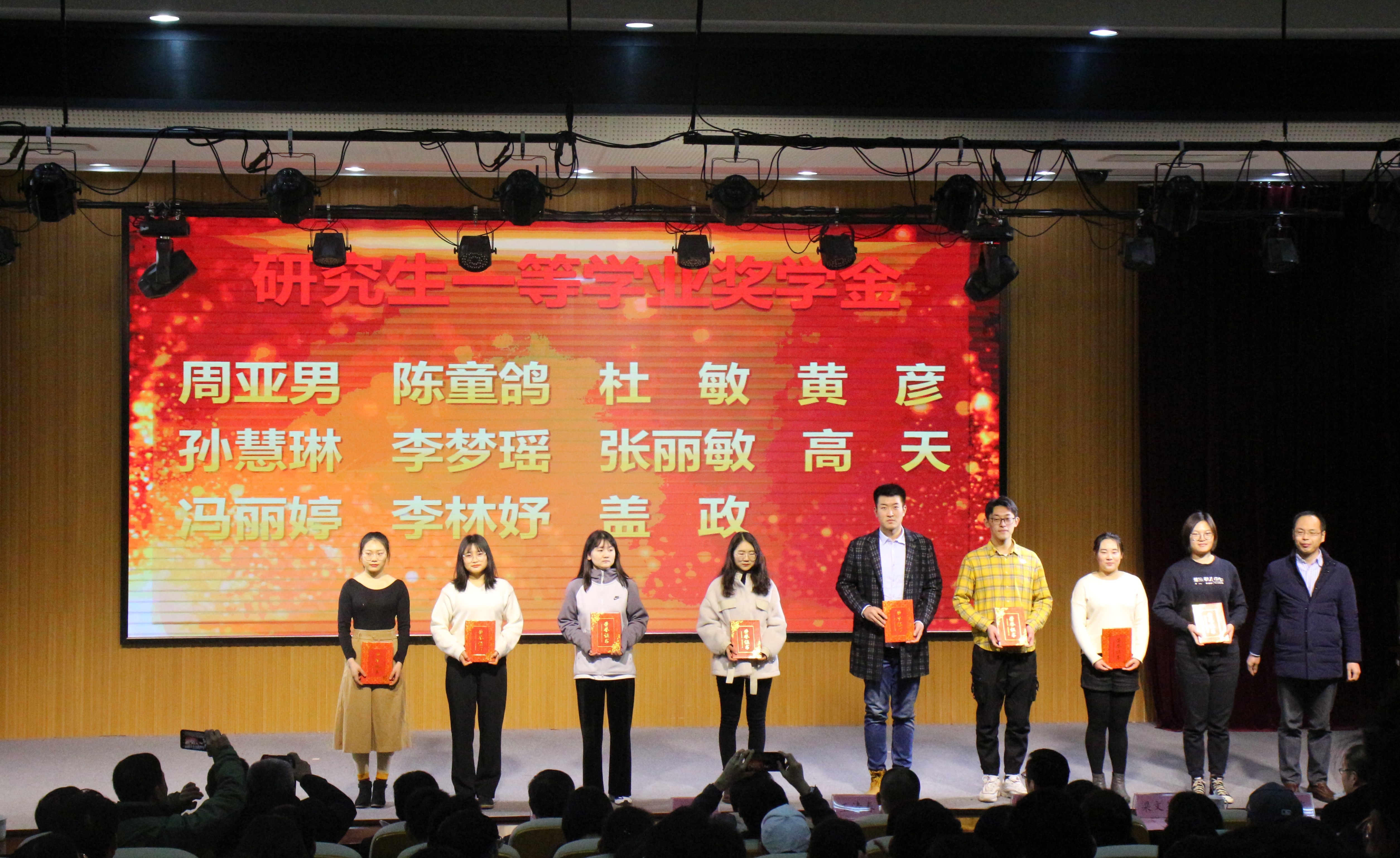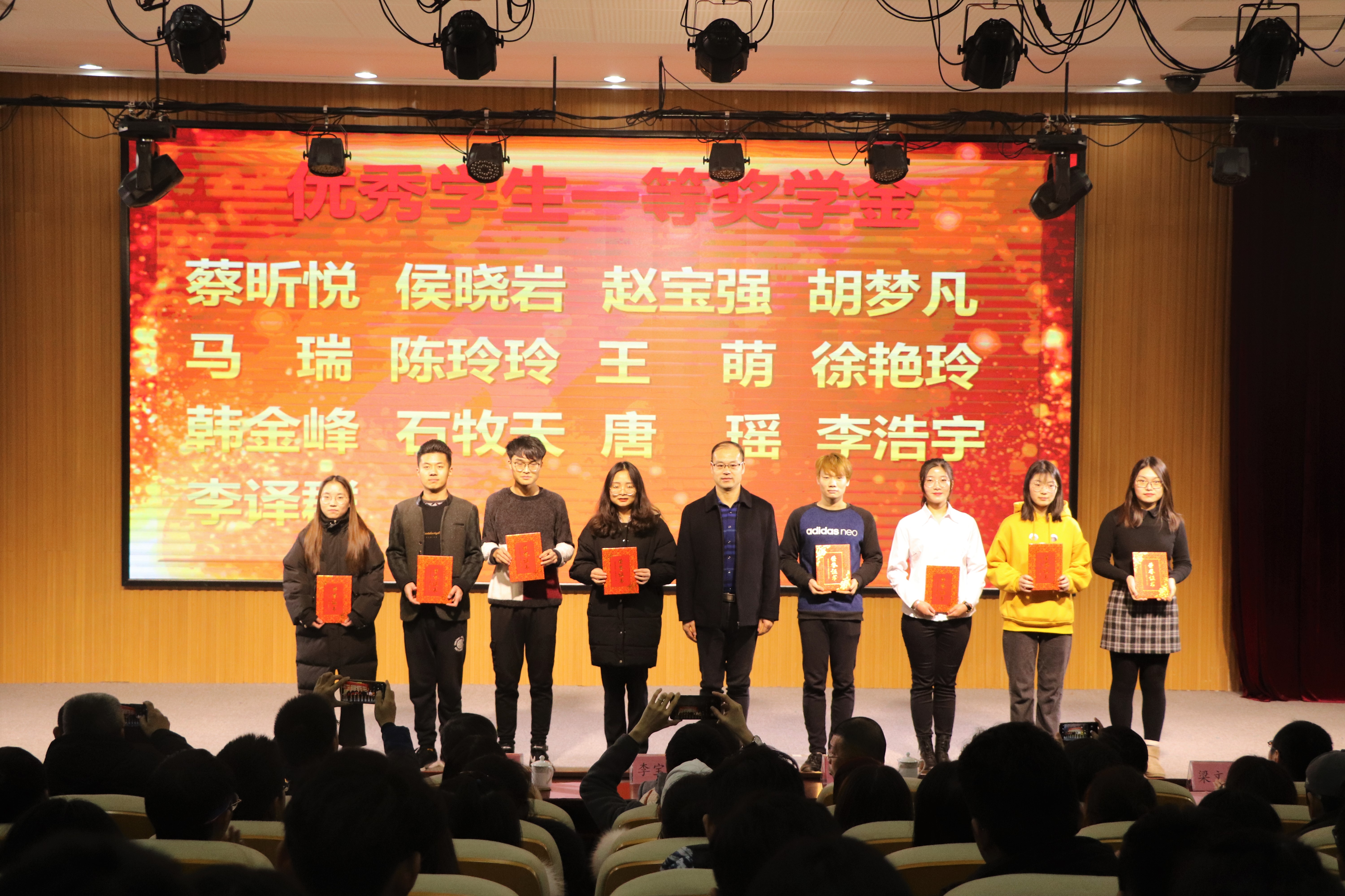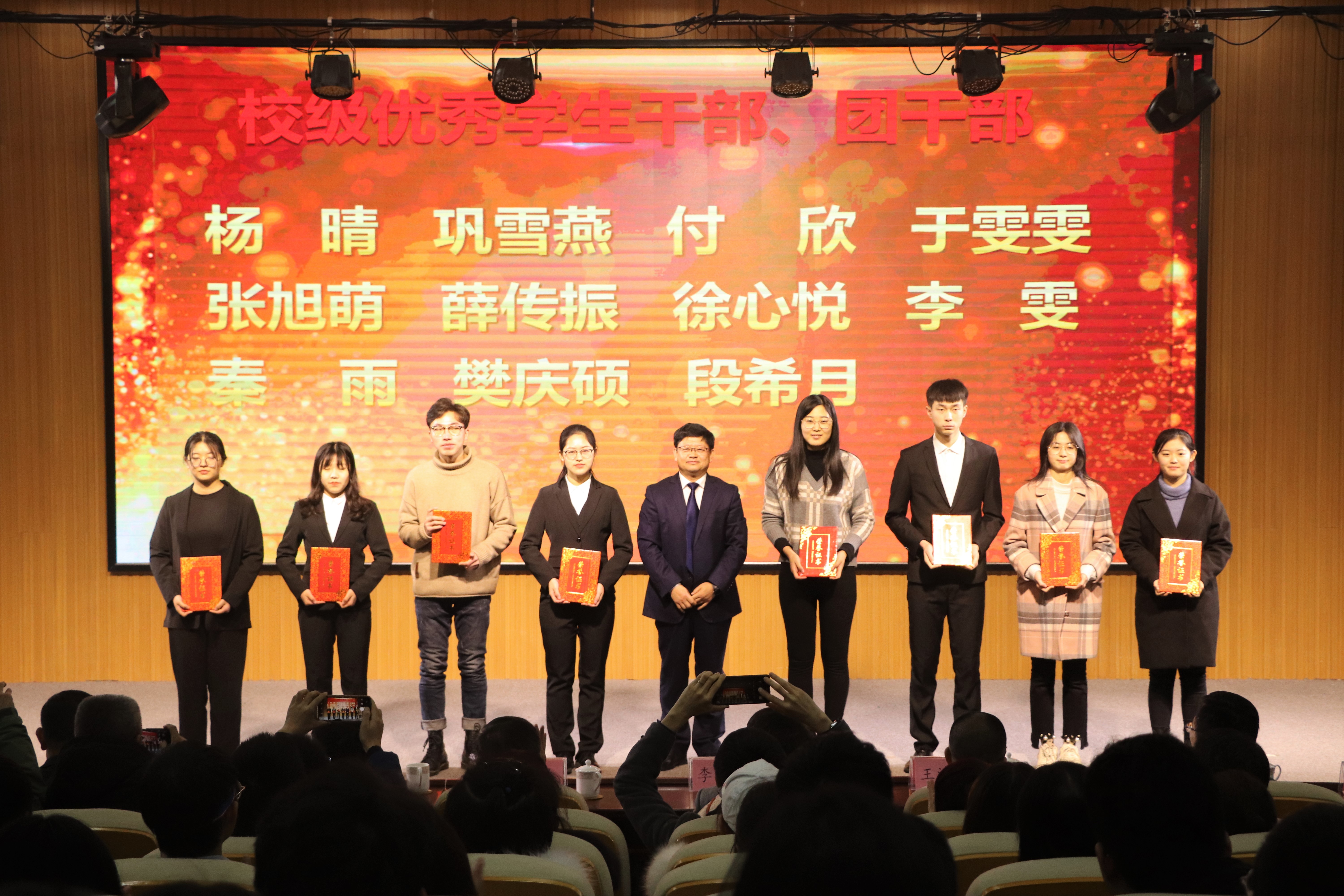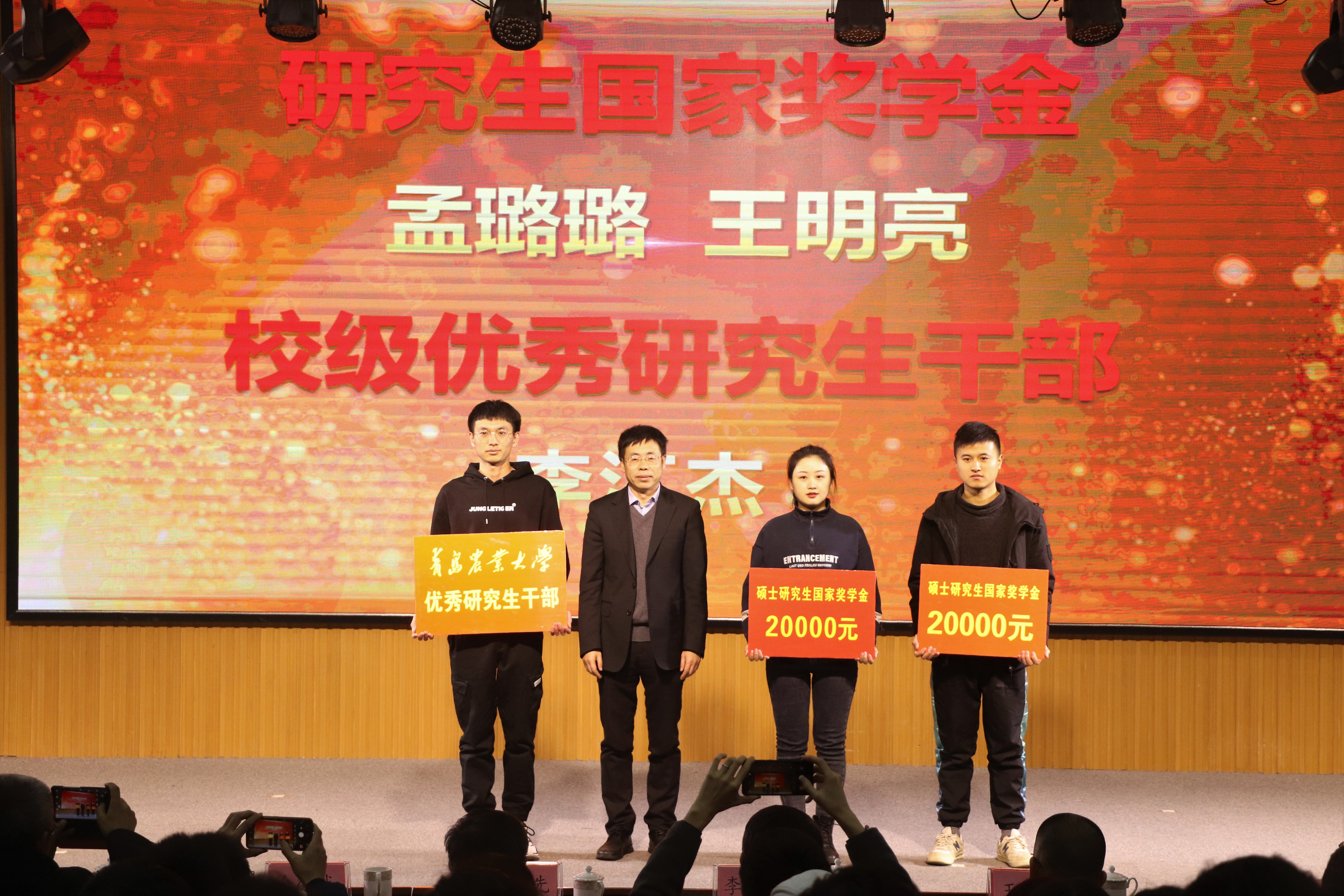会上,校级优秀班主任代表迟胜起,公司优秀学术导师黄金光,国家奖学金获孟璐璐,第十六届“挑战杯”获奖团队金麦穗战队代表宋春霖,很准农医项目获奖团队代表王凌云分别上台发言。迟胜起分享了几年来班主任工作的感想和心得体会。黄金光分享了自己在学术建设方面经验,希望同学们能够积极参与到各种社会实践与专业竞赛中去。孟璐璐、宋春霖、王凌云分别在学术研究、专业竞赛、创新创业三个方面分别分享了自己的经验。