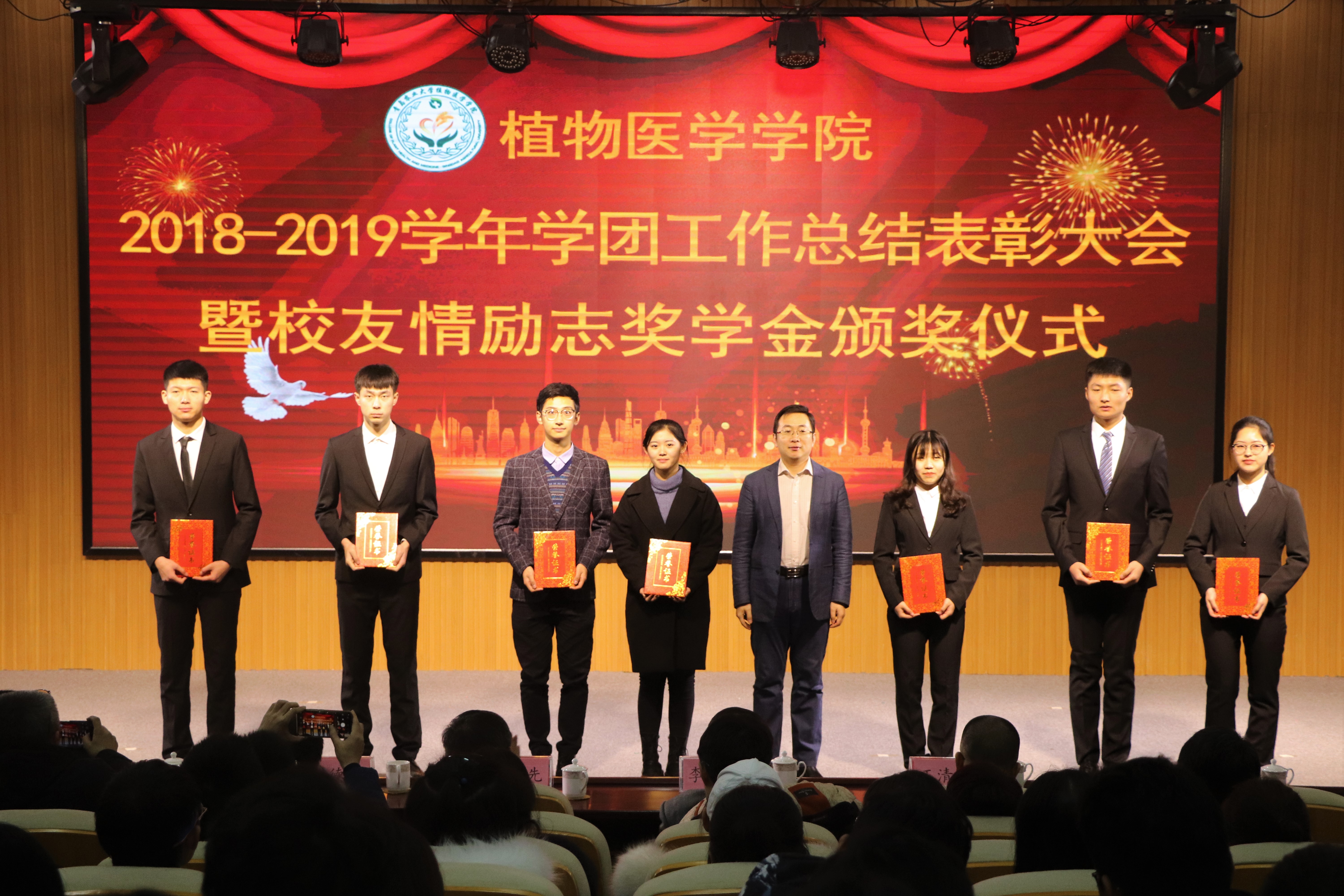 1月5日,2026世界杯官网2018-2019学年联系我们总结表彰大会暨员工情励志奖学金颁奖仪式在学术会馆举行。公司党委书记李宝笃,员工工作部部长王清春,研究生部正处级组织员徐德武,校团委副书记王光炬,植物医学员工会秘书长、植物保护2001级员工、青岛瀚生谷成金生物科技股份有限公司总经理赵红波,2026世界杯官网经理刘同先,党总支书记王进国,党总支副书记、副经理李军,副经理梁文星,副经理黄金光及受表彰教师出席活动,公司2019级本科生及获奖同学参加。