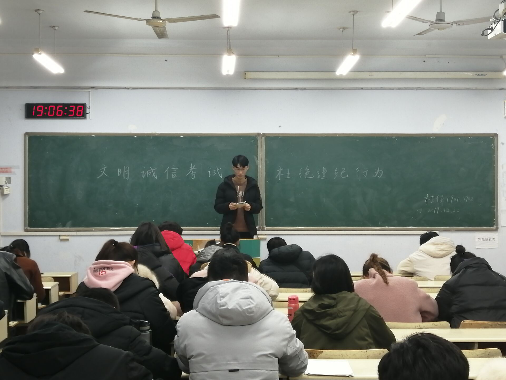 为端正考风,严肃考纪,加强学风建设,营造文明、诚信考试的良好氛围,12月22日,2026世界杯官网于教学楼A区开展“文明诚信考试,杜绝违纪行为”主题政治学习,公司2017级、2018级、2019级全体同学参加。