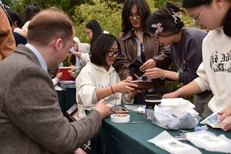活动精心设置了标本制作、标本鉴赏和标本识别三个环节。在标本制作区,同学们在志愿者的指导下,学习如何将昆虫制作成标本。大家小心翼翼地调整蝴蝶翅膀的展开角度,认真固定甲虫的肢体姿态,现场充满了专注而热烈的氛围。移步标本鉴赏区,百余件精美的昆虫标本整齐陈列。志愿者们生动讲解着各类昆虫的特征和习性,同学们或俯身细看,或轻声讨论,不时发出感叹。"身穿花衣爱跳舞,翅膀一扇飞远处"、"小小建筑师,六角房子住"等趣味谜语吸引了不少同学参与。大家三五成群地围在标本旁,一边观察一边讨论,现场不时爆发出猜中谜底的欢呼声和掌声。此次活动,激发了同学们对昆虫学的浓厚兴趣,也进一步丰富了校园科技文化艺术节的氛围。