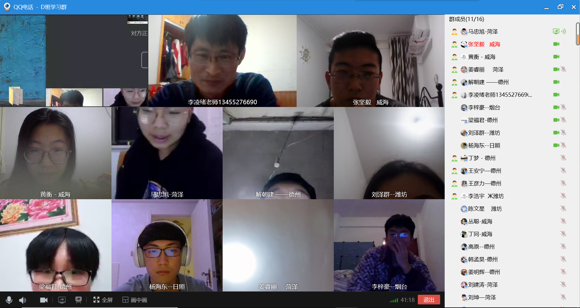 线上班会期间,各班班主任及班级同学通过视频通话,就班级同学上学期学习成绩、四六级通过率,疫情期间学习状态,新学期发展规划,身心健康状况,近期生活情况等进行深入了解,分析并帮助同学们解决相关问题。2017级班主任在同学们即将面对的考研准备、复习规划、目标院校选择等问题中给出了专业性指导与建议。2016级班主任针对考研复试、毕业设计、公务员备考、择业就业等问题做出指导。