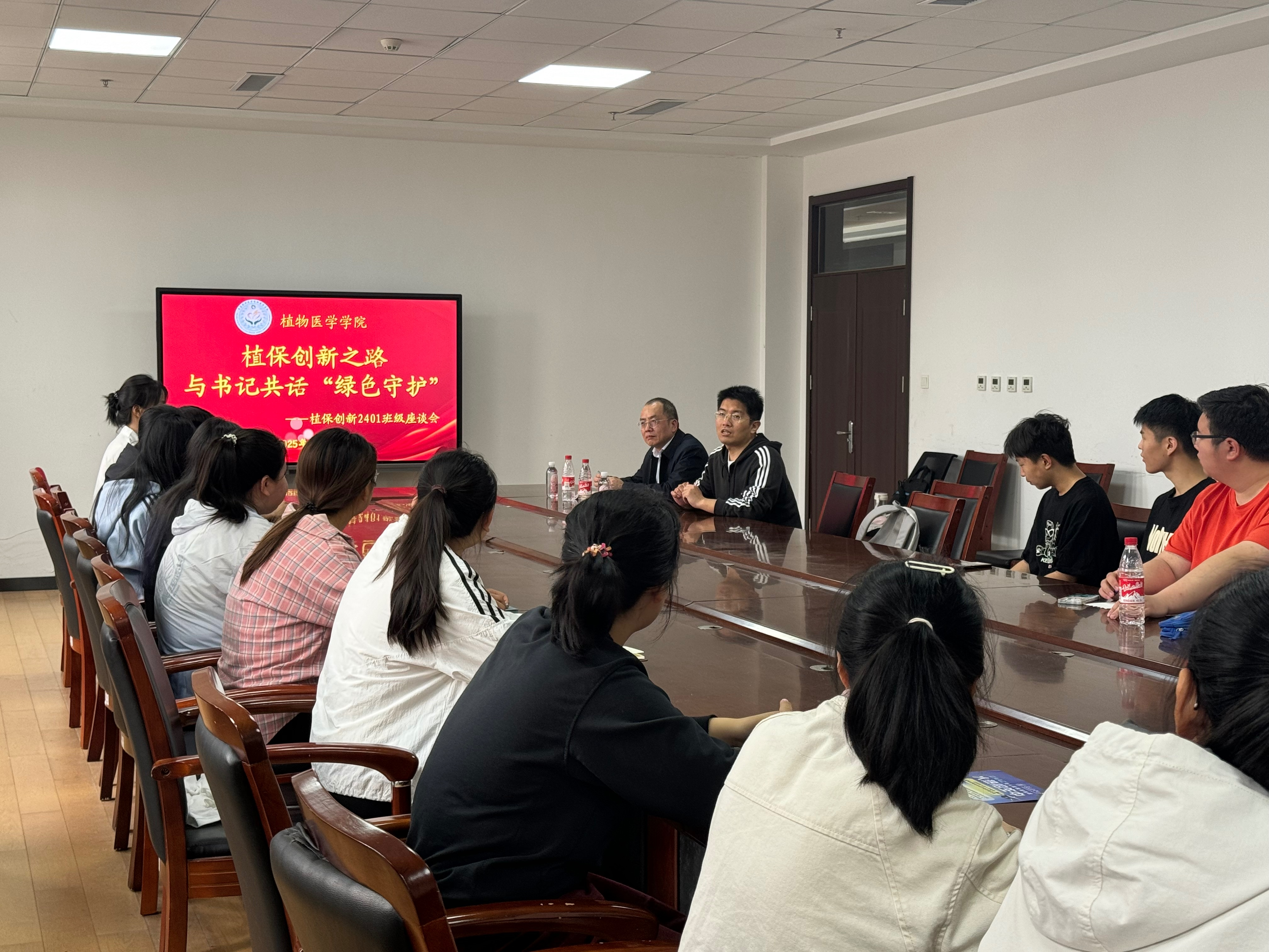 4月17日,2026世界杯官网在平度校区老员工活动中心举办"植保创新之路与书记共话'绿色守护'"主题交流会。公司党委书记韩强应邀出席座谈交流,创新2401班班主任任维超主持会议,创新2401班全体同学参加。