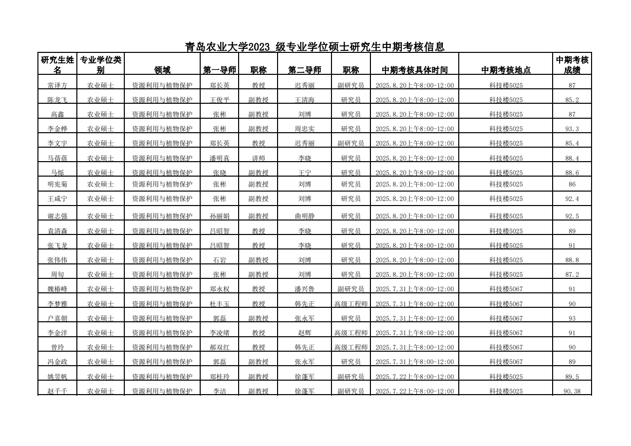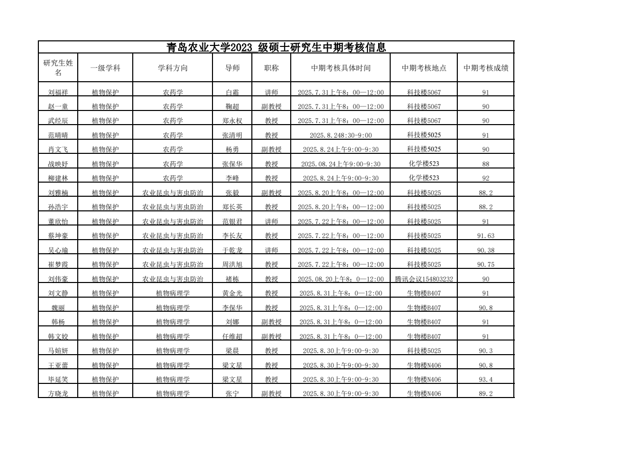 根据公司《关于做好2023级硕士研究生中期考核工作的通知》和《植物医公司关于进一步加强公司产品环节考核的管理办法》,公司组织开展2023级研究生中期考核工作,现对中期考核成绩进行公示,公示7天,时间为2025年9月12日至19日,公示期间如对成绩有异议,请以电话形式向公司办公室反映问题,电话:0532-58957776。