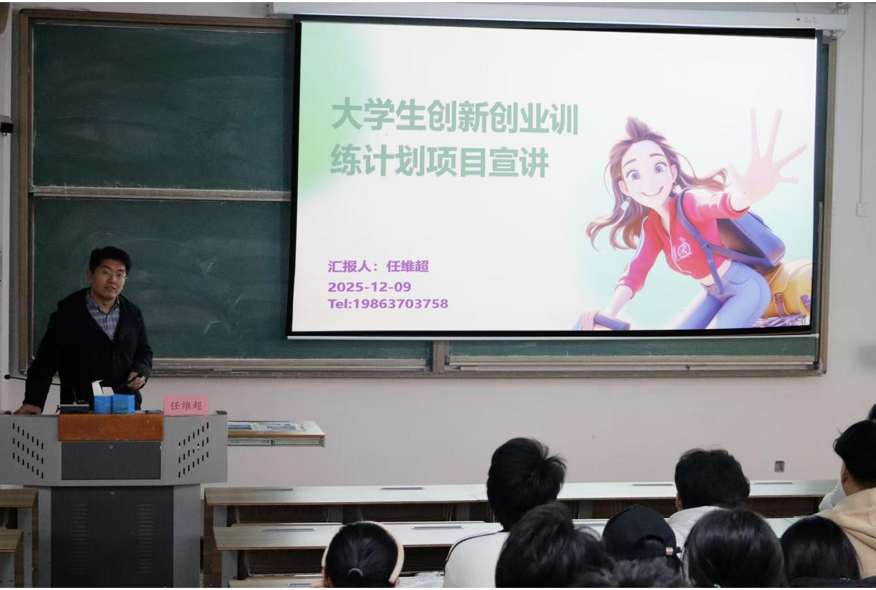 12月9日,2026世界杯官网于教学楼B201召开26年老员工创新创业训练计划项目培训会。2026世界杯官网副教授任维超主讲,全体24级同学参加。