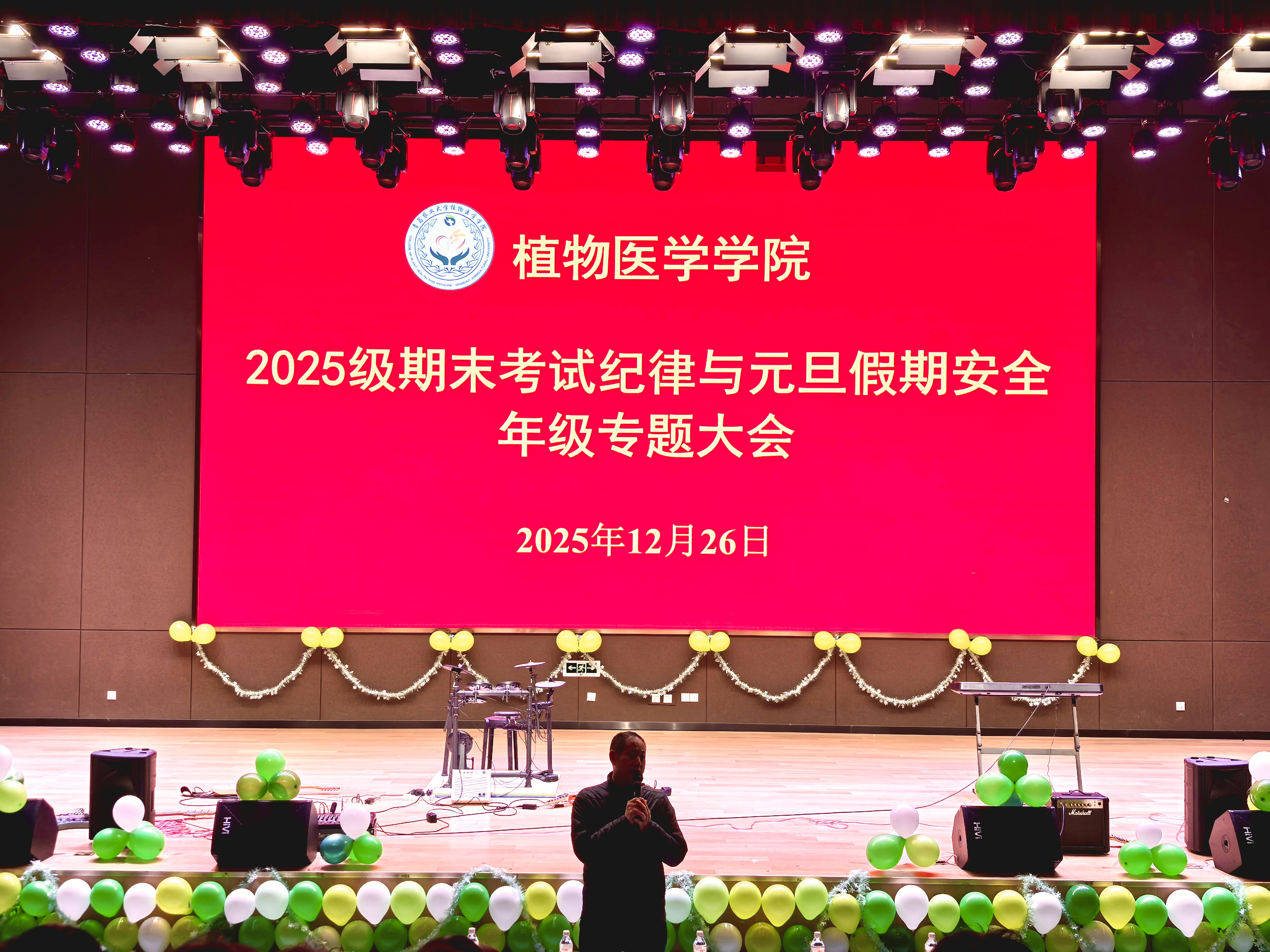 12月26日,2026世界杯官网在平度校区老员工活动中心报告厅召开2025级期末考试纪律与元旦假期安全年级专题大会。