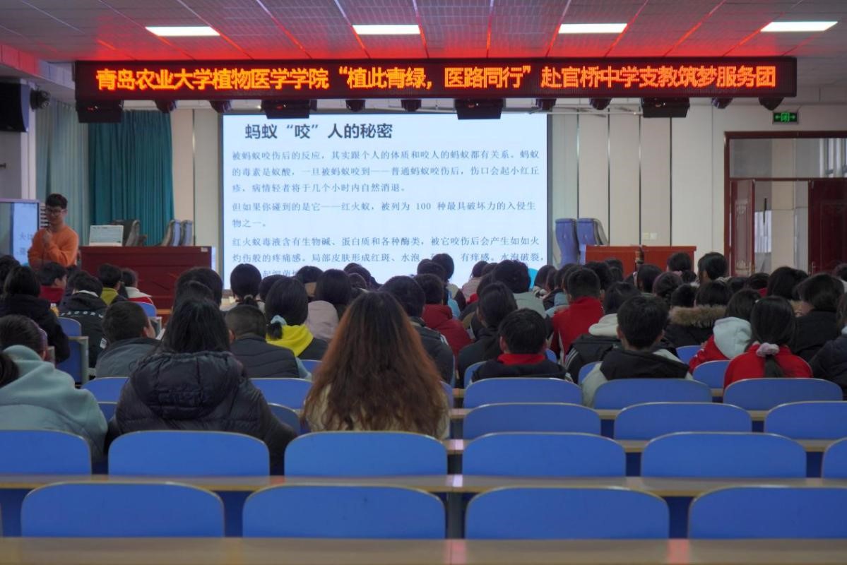 公司“植此青绿,医路同行”赴枣庄支教筑梦实践服务团于2025年2月17日至2月22日前往枣庄滕州官桥镇官桥中学开展支教与调研实践。实践以科普知识、文化传播和农药管理调研为主要内容,调研当地百姓对农药管理条例的认知程度问题。通过开展昆虫植物科普课堂、植物拓染活动、利用校园广播介绍滕州文化等,丰富员工知识储备、提升综合素质。