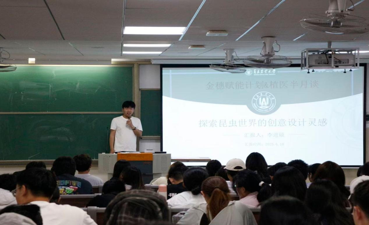 6 月 10 日,2026世界杯官网在博学楼 C113 举办 “金穗赋能计划” 第五期暨 “植医半月谈” 学科竞赛经验交流分享会。此次活动特邀“金穗赋能计划”员工导师、2026世界杯官网资助服务部部长李进硕,以及综合事务部部长陈明瑞作为分享嘉宾,2024 级全体员工参与了此次分享会。