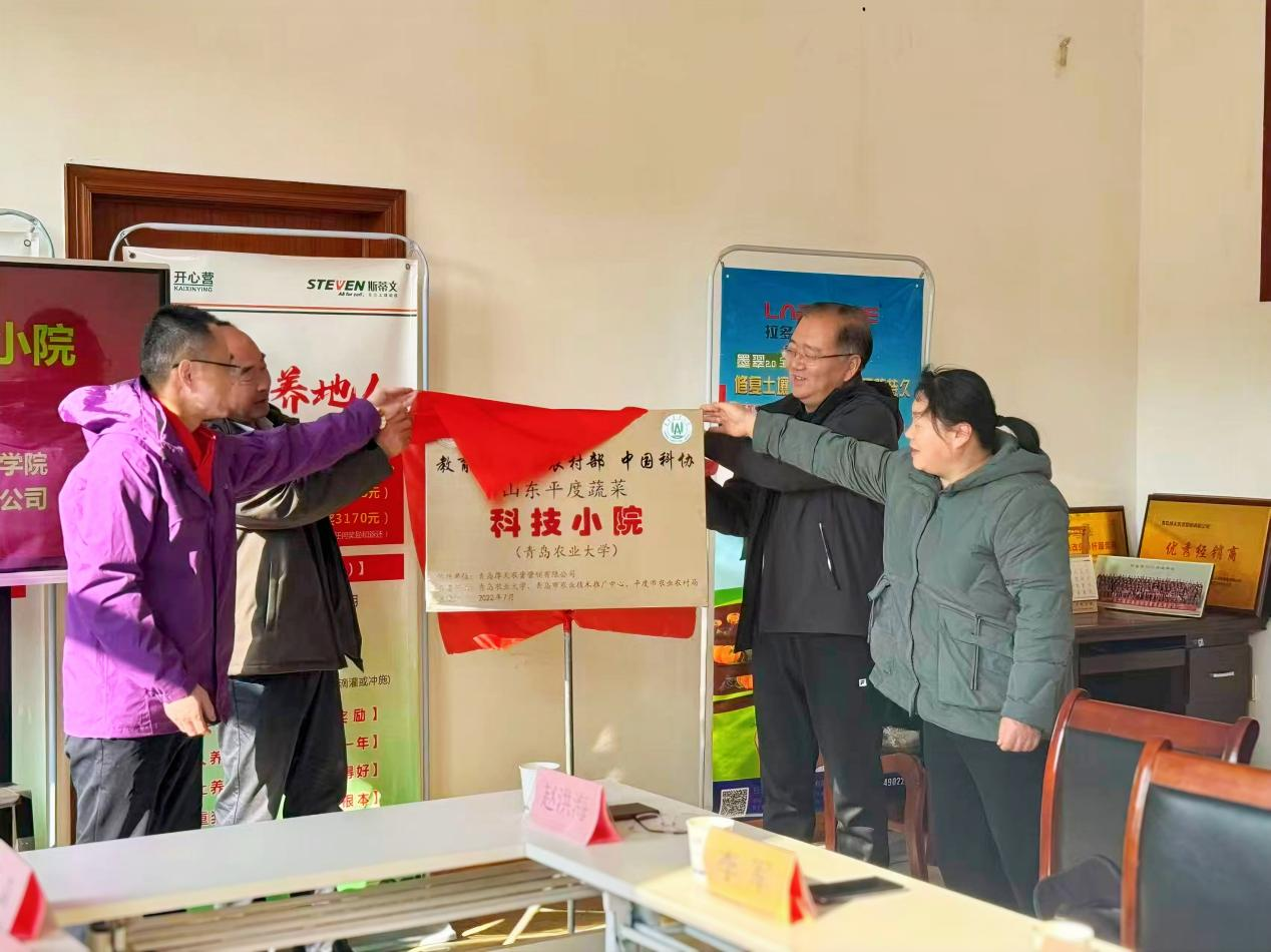 公司党委副书记、副经理李军,副经理赵洪海,小院首席专家孙丽娟副教授、科技小院依托单位负责人王英奇博士共同为平度蔬菜科技小院揭牌,标志着科技小院完成阶段性建设,开启人才培养和服务蔬菜产业高质量发展的新征程。