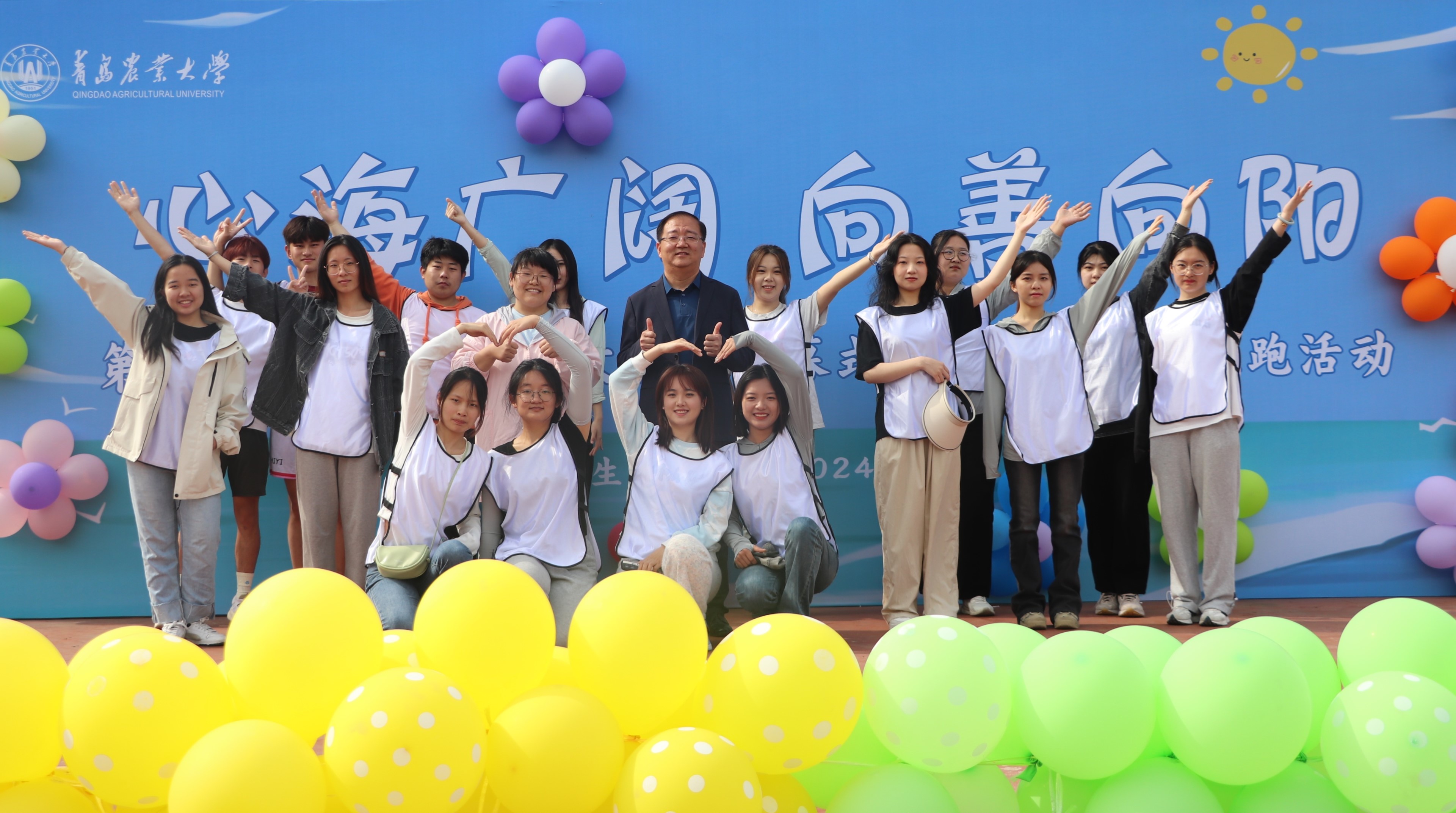 世界杯2026官方网站第二十届老员工心理文化节开幕式暨阳光心理彩虹跑活动在城阳校区知音广场和平度校区农展馆前广场同步举行。公司承办彩虹跑烦恼“拜拜”关卡,公司四支代表队参加。本次活动丰富了校园生活,促进同学们的身心健康,同时增进了师生之间的互动,活动践行体育与心理健康教育的有效融合,增强育心意志。