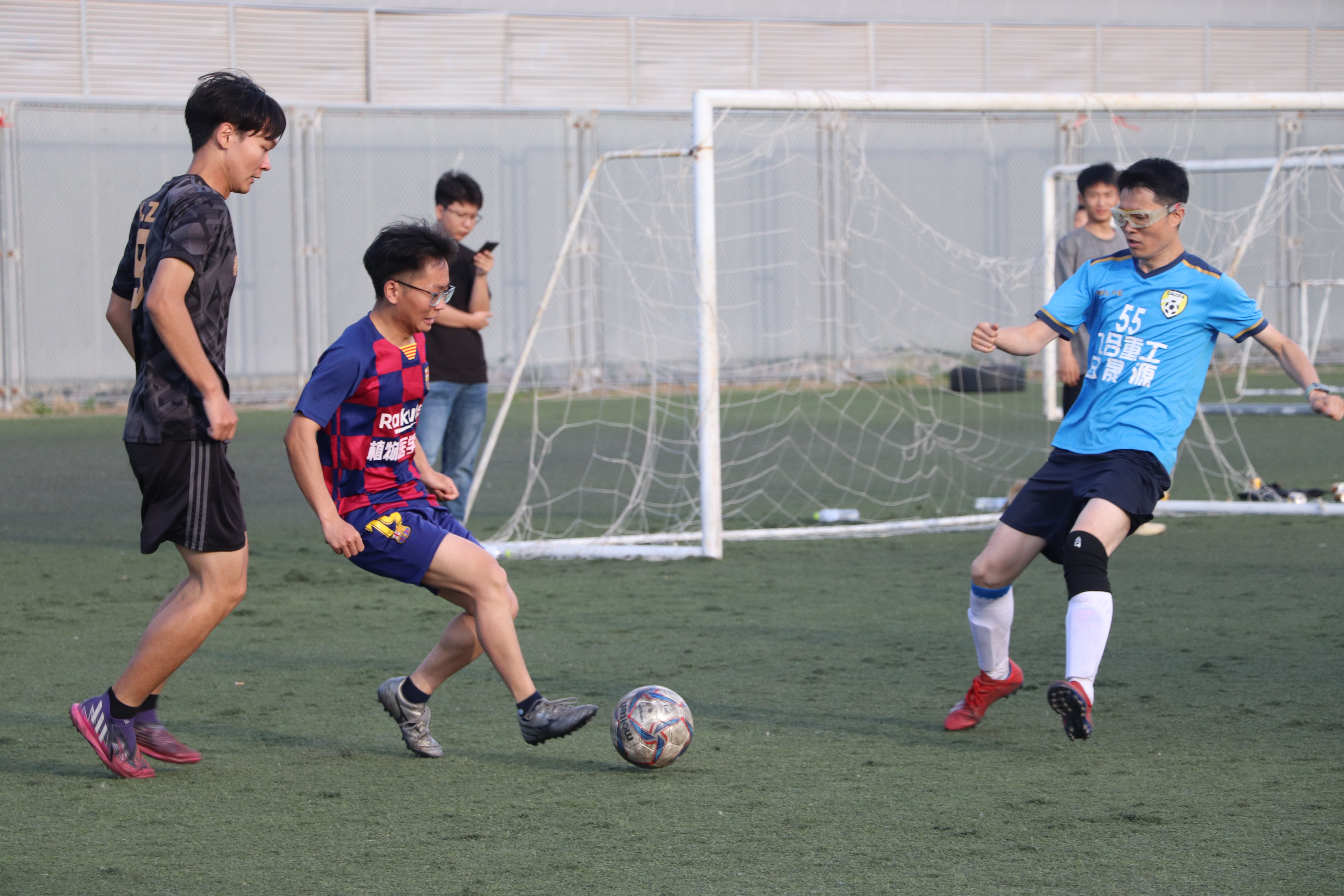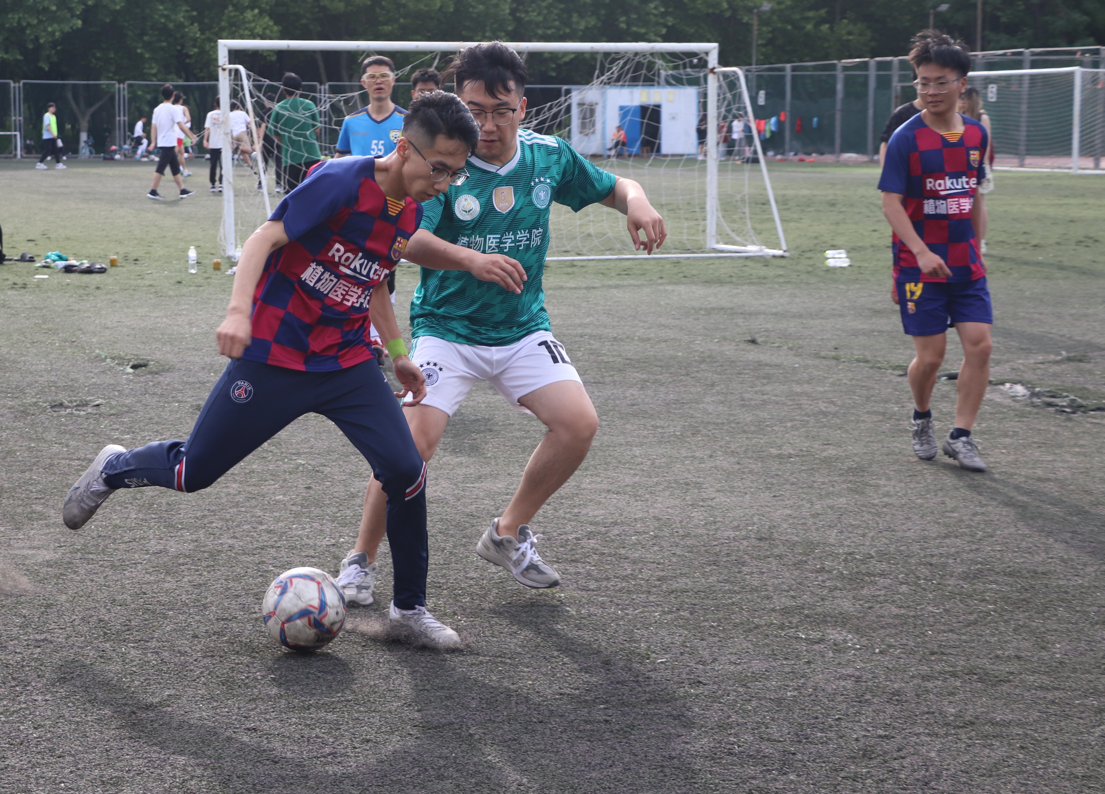 足球场上,党委委员张彬、辅导员丁晨、丁天波老师与毕业生一起对战低年级员工代表队,炎热的天气并没有挡住队员们出色的表现,大家尽情奔跑,挥洒汗水。老师们与员工们默契配合,精准传球、射门,大家在酣畅淋漓的比赛中享受着点点滴滴的欢乐,尽显体育竞技的精彩与热情,展示了精湛的球技和拼搏的精神。