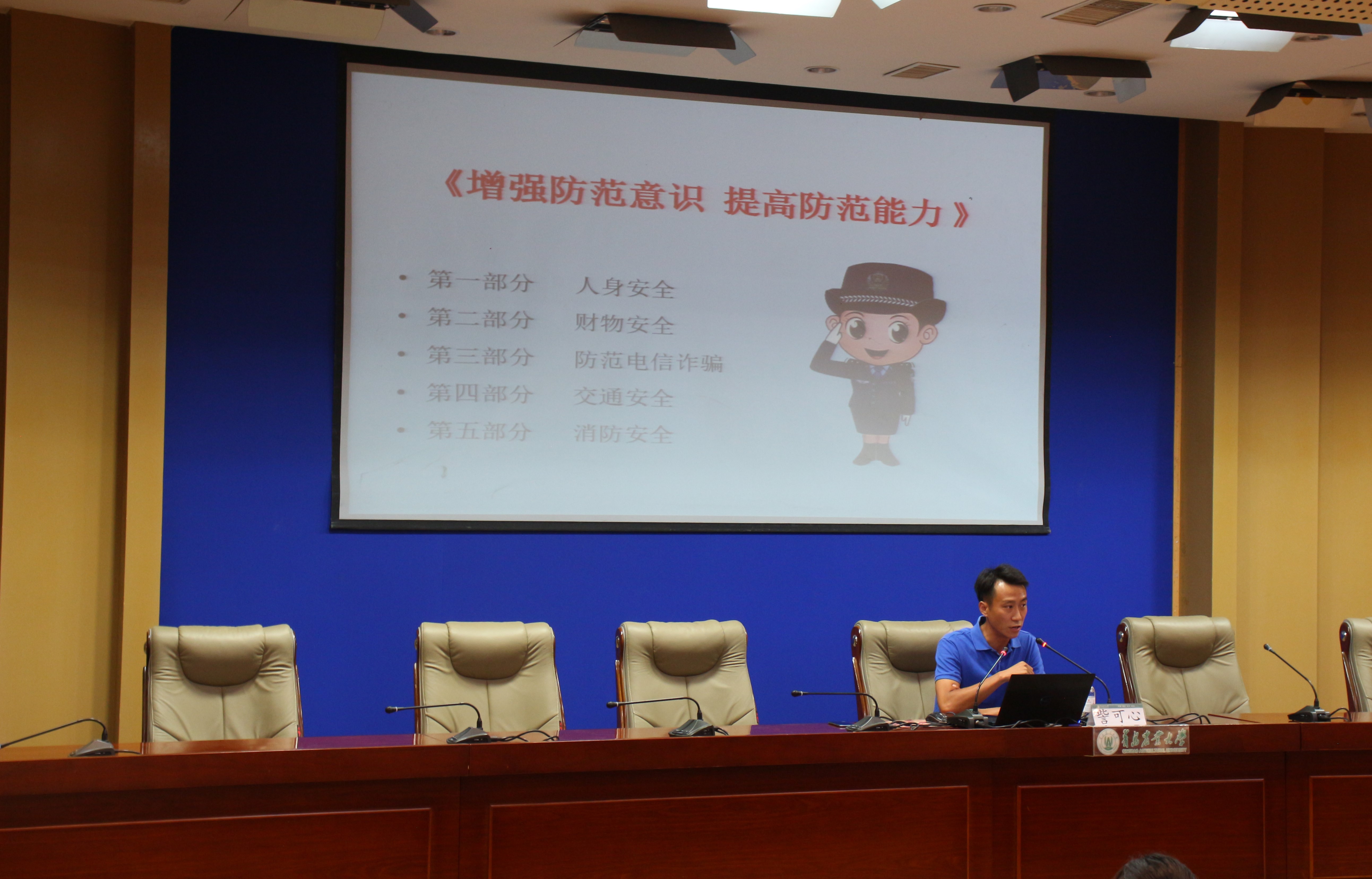为提高新生安全防范意识,创建安全校园。9月14日,2026世界杯官网于学术会馆第一报告厅召开了2020届新生安全教育报告会。保卫(部)处治安科科长訾可心主讲,2020级全体新生参加会议。