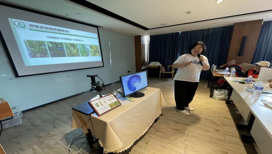 专业积淀赋予的底气,让她在应对技术要求挑战时能更加的游刃有余。杨铭鑫回忆道,当时胶州的一处蔬菜基地正遭受迟眼蕈蚊和甜菜夜蛾的双重侵害,严苛的出口农残标准使常规用药方案束手无策。临危受命的她并未急于施药,而是率先深入田间,开展系统的虫情监测。通过黄板监测迟眼蕈蚊成虫高发期,通过性诱剂监测的方法,锁定了甜菜夜蛾幼虫孵化的关键期。杨铭鑫随即制定了一套针对性方案,以最少的药量在最佳时间点实施精准防治。当虫害被有效控制,所有蔬菜都顺利通过出口检测,同时基地生产的大葱成为青岛市第一家获得绿色食品认证的大葱时,基地负责人李春花经理特别自豪的告诉她:“杨老师咱们家的大葱通过绿色食品认证了”。这一刻,杨铭鑫深刻体会到:在青岛农大扎实学习的专业知识,正是她在田间地头最可靠的“锦囊妙计”。