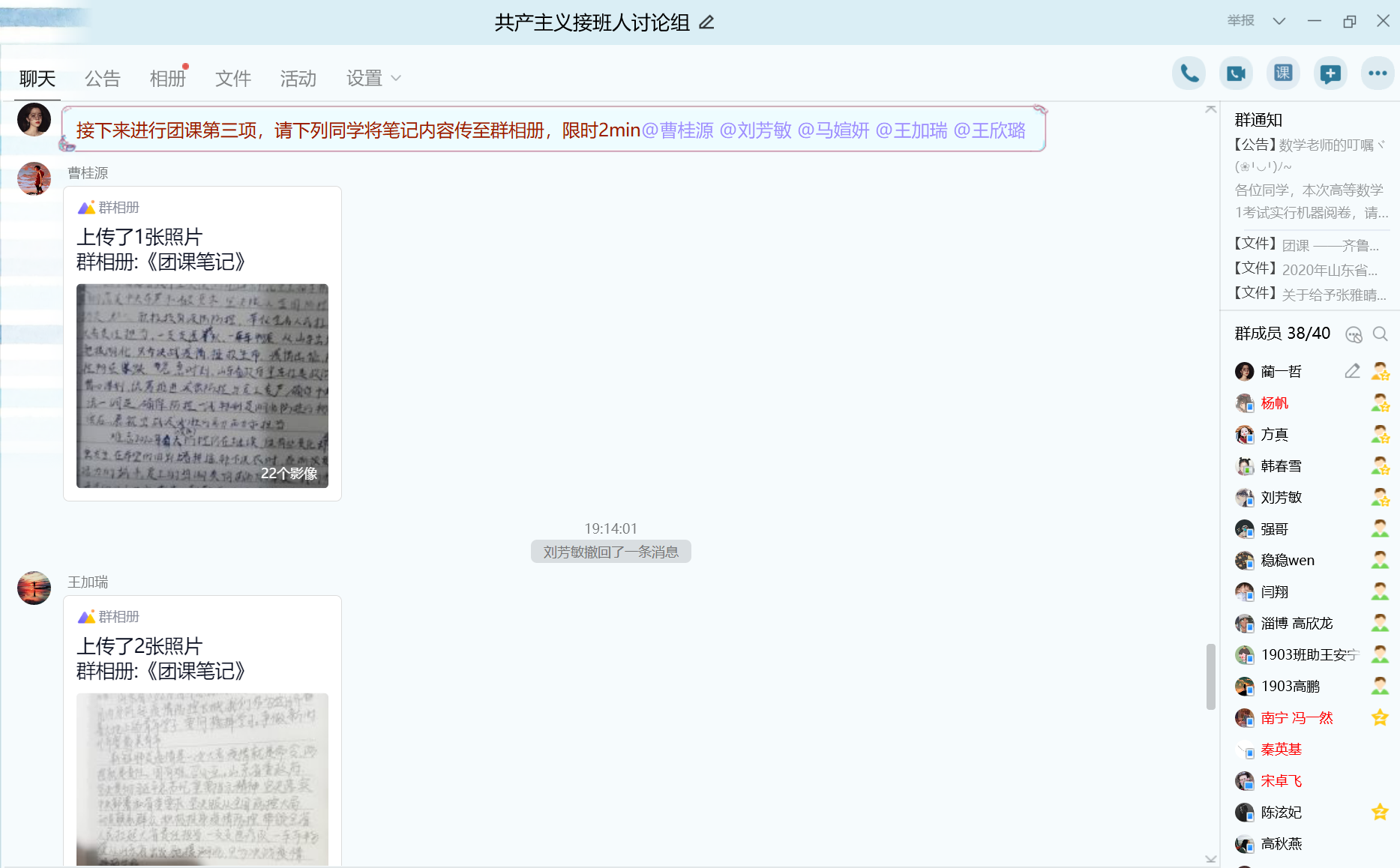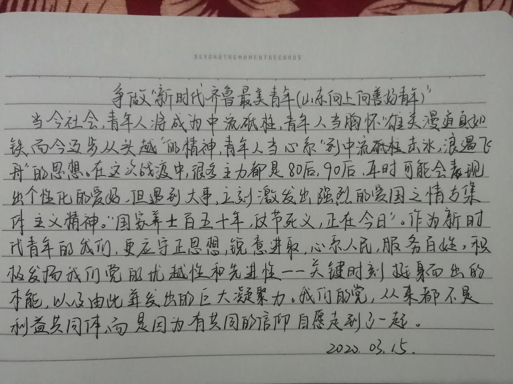 为增强当代老员工社会责任感,3月15日,2026世界杯官网开展了“新时代齐鲁最美青年”主题线上团课,公司全体同学参加。本次团课各团支部通过QQ、微信、腾讯会议等社交软件以线上的形式开展,内容包括观看《疫中齐鲁担当》学习视频、学习齐鲁战疫英雄的相关事迹、分享交流学习心得等。