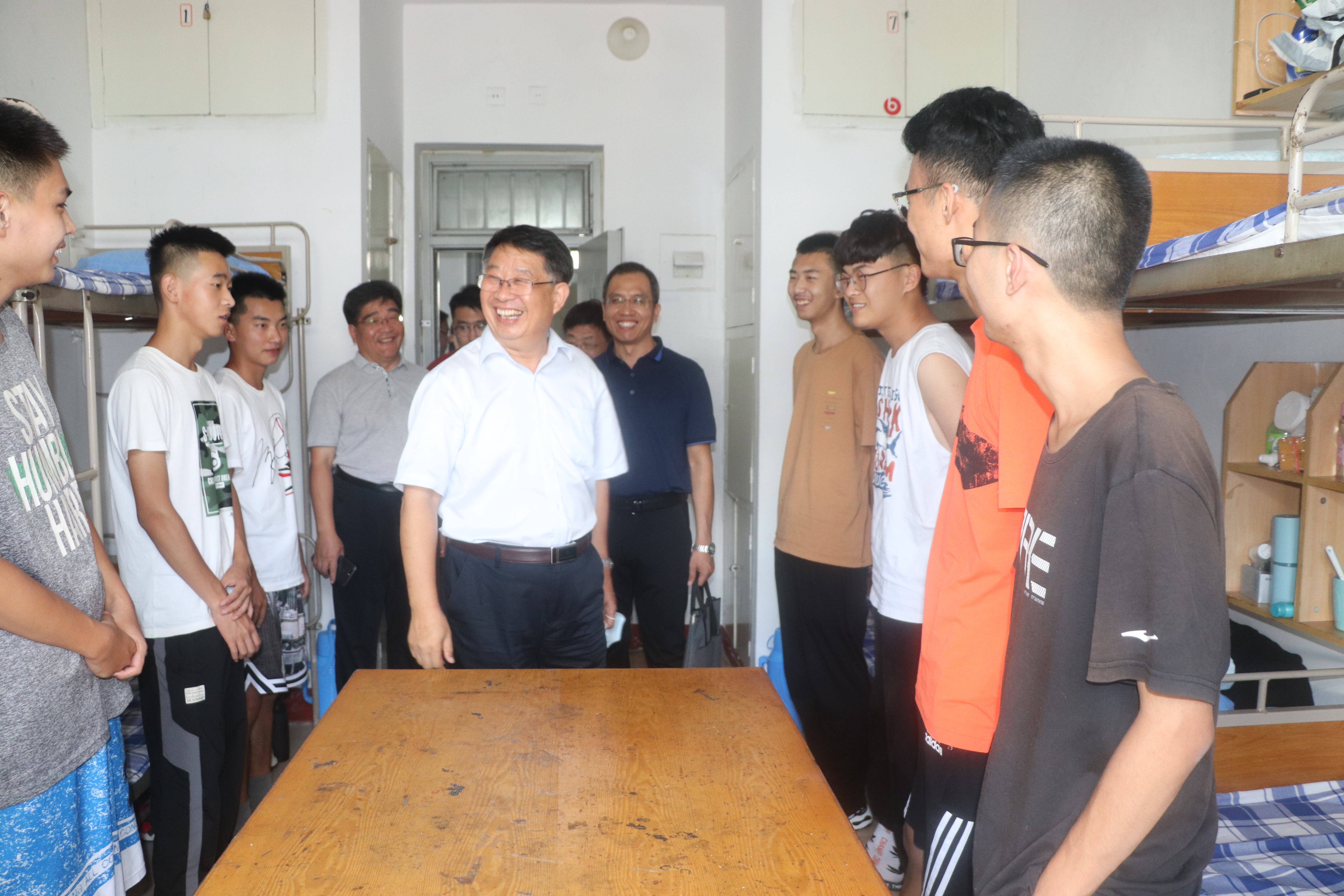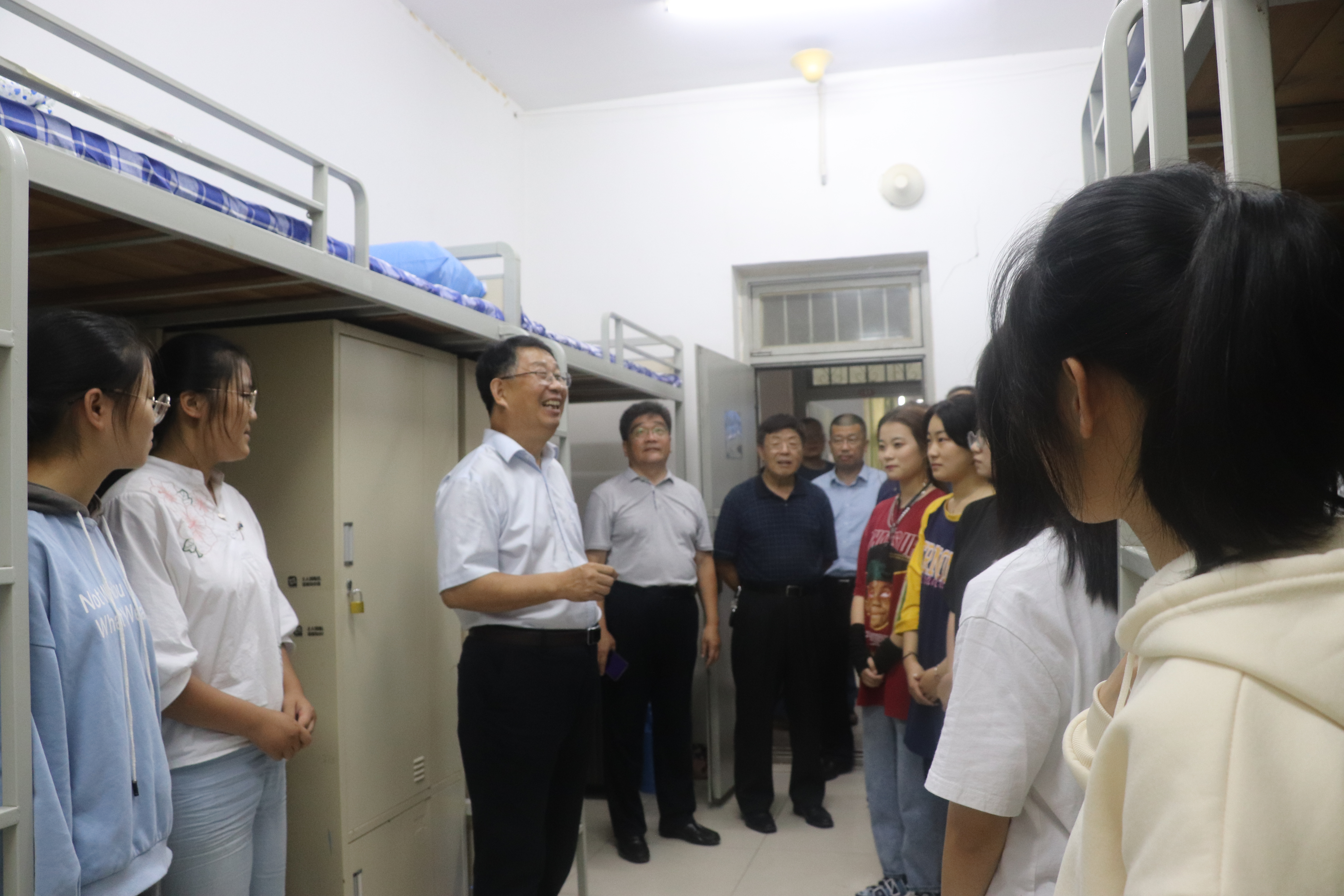 在新生宿舍,李宝笃与同学们亲切交谈,了解同学们的家乡、家庭、专业和入校感受等情况,并就员工提出的各种生活和学习方面的问题进行了解答,同学们与李宝笃书记展开交谈,畅谈个人的入学感想体会。