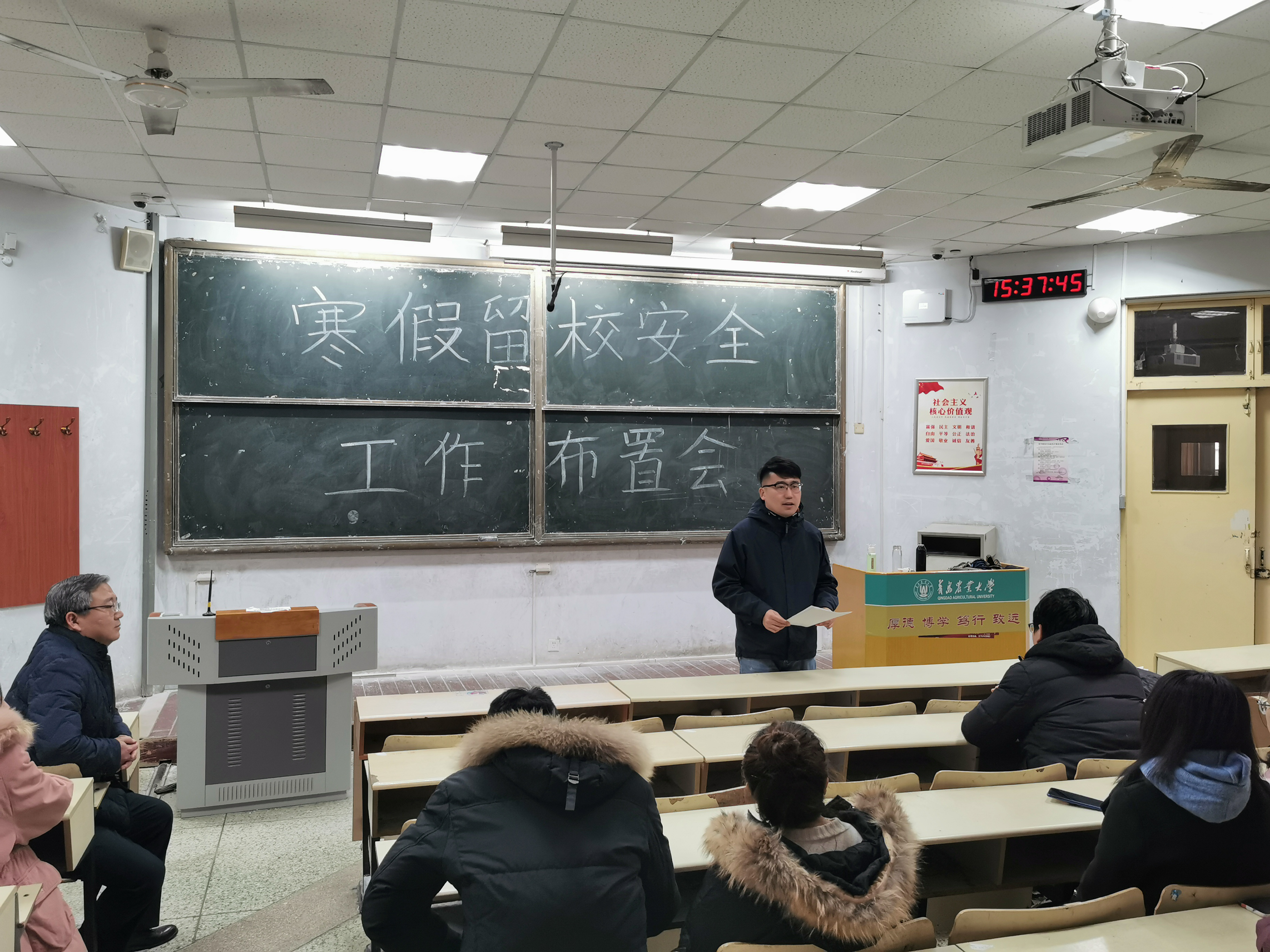 1月13日,公司召开寒假留校安全工作部署会,党总支副书记、副经理李军,辅导员丁晨出席会议,全体留校研究生和本科生参加。