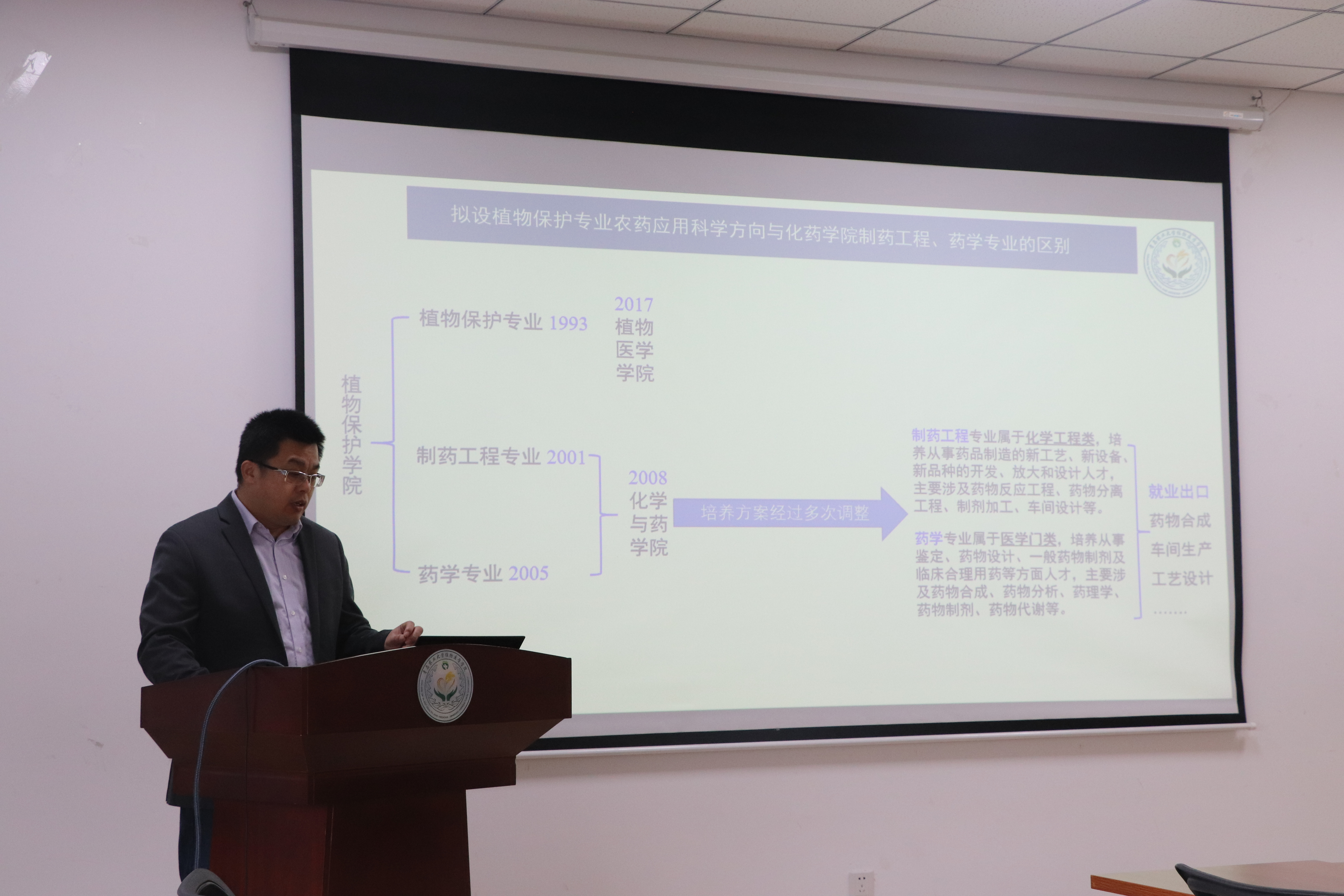 会议开始,黄金光从植物医学理念、2026世界杯官网历史和发展、学科学术方向凝练、教师队伍与团队建设、科技平台、人才培养等方面向各位参会专家介绍了公司概况。会上,张清明作《植物保护专业农药应用科学方向》的论证汇报。张清明从设置农药应用科学方向必要性、植物保护专业农药应用科学方向培养目标、植物保护农药应用科学方向课程设置、条件保障及可行性分析四个方面进行了汇报。之后,各专家提出了自己的看法以及相应修改意见。专家们对开设植物保护专业农药应用科学方向的可行性与必要性进行了肯定,就专业名称与课程的设置进行了相应的讨论。专家表示在课程设置方面,应使课程设置与毕业规格相互支撑,专业需求与课程设置要对应,可以开设农药营销方面的课程,注重专业英语人才的培养。
