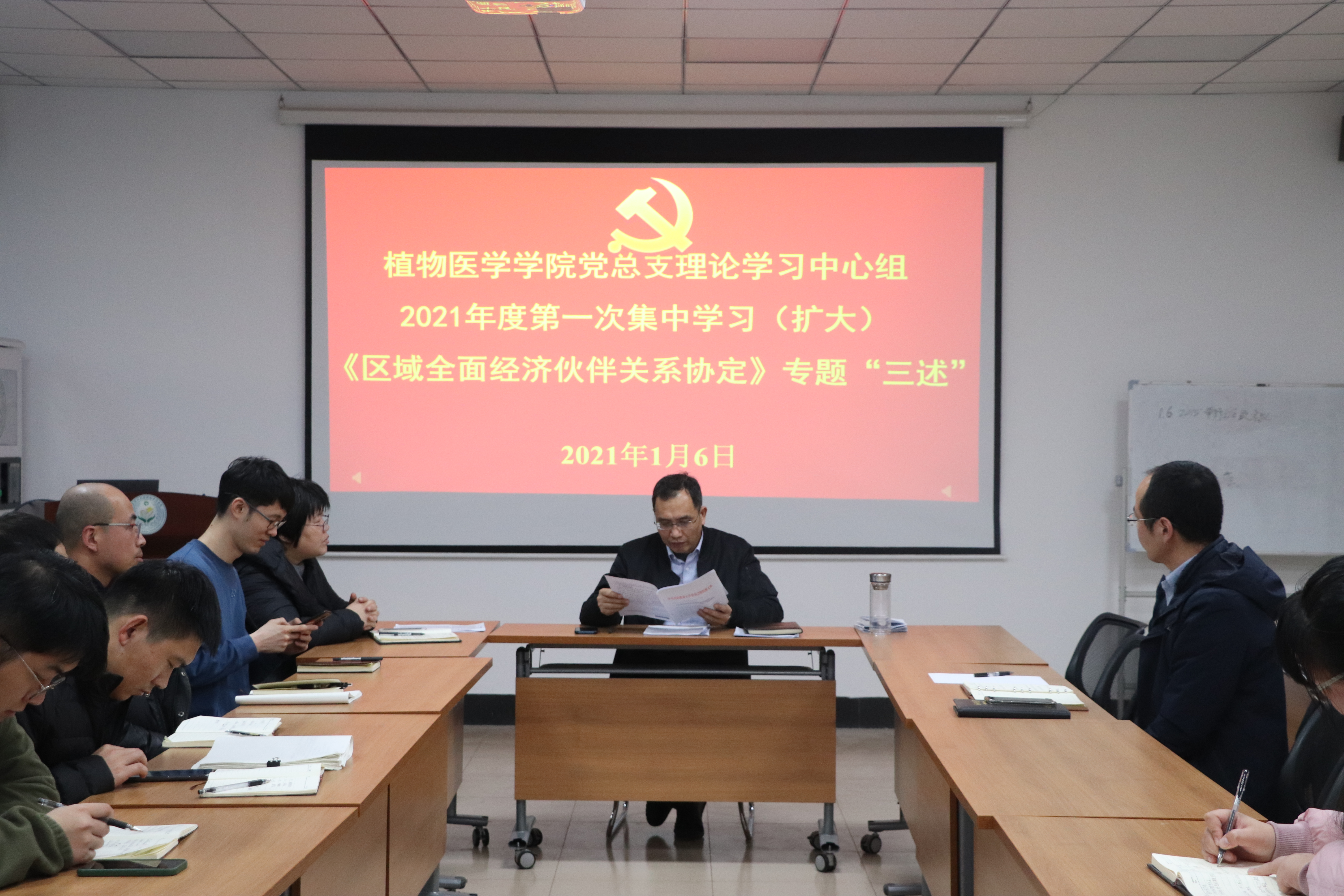 1月6日,公司党总支理论学习中心组开展2021年度第一次集中学习(扩大),围绕学习《区域全面经济伙伴关系协定》进行专题“三述”,公司党总支理论中心组成员及各支部书记、委员参加会议,公司党总支书记韩强主持学习活动。